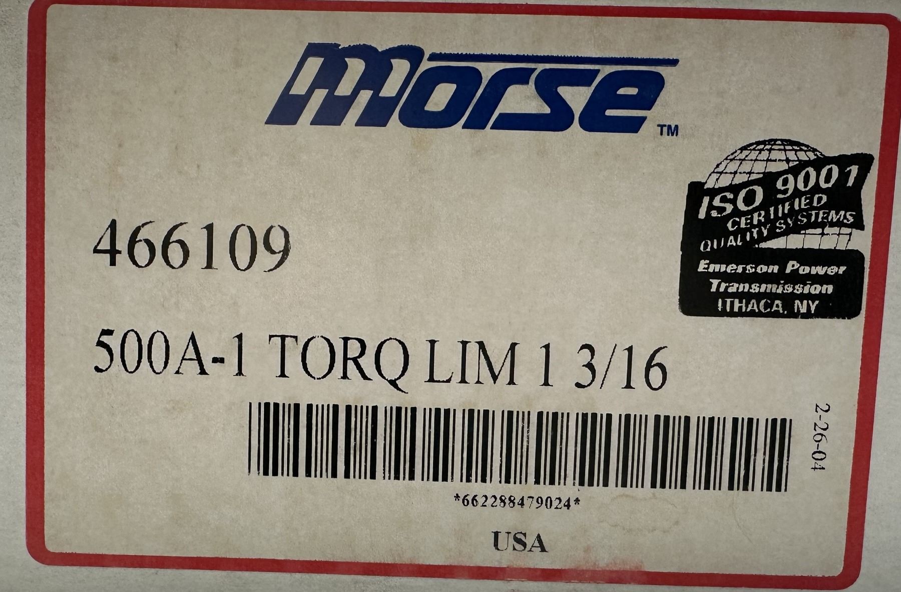 (2) Morse #466109 / 500A-1 Torque Limiter 1 3/16"