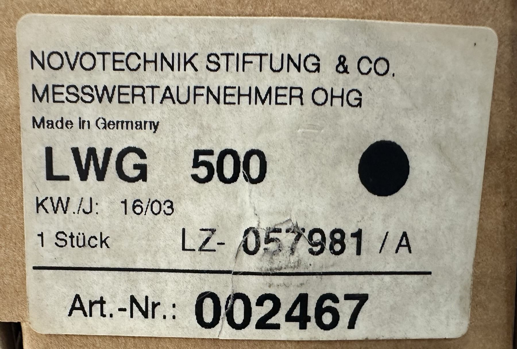 (2) Novotechnik Stiftung #002467/ LWG 500 Transducers