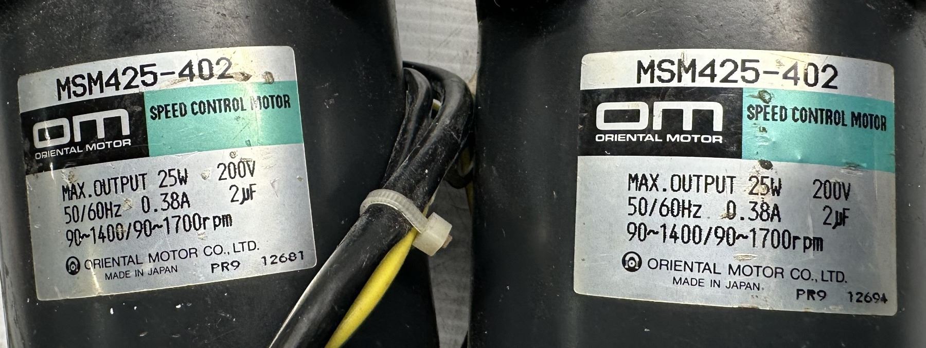 (2) Oriental Motor #MSM425-402 Speed Control Motors w/#4GN5K Gear Heads