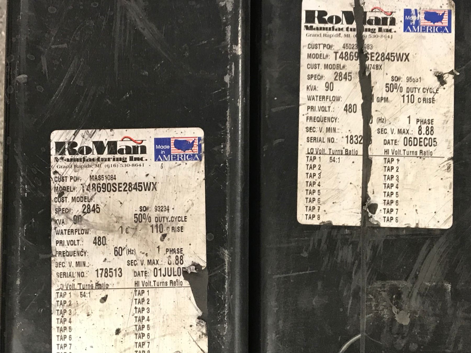 (2) ROMAN T48690SE2845WX WELDING TRANSFORMER