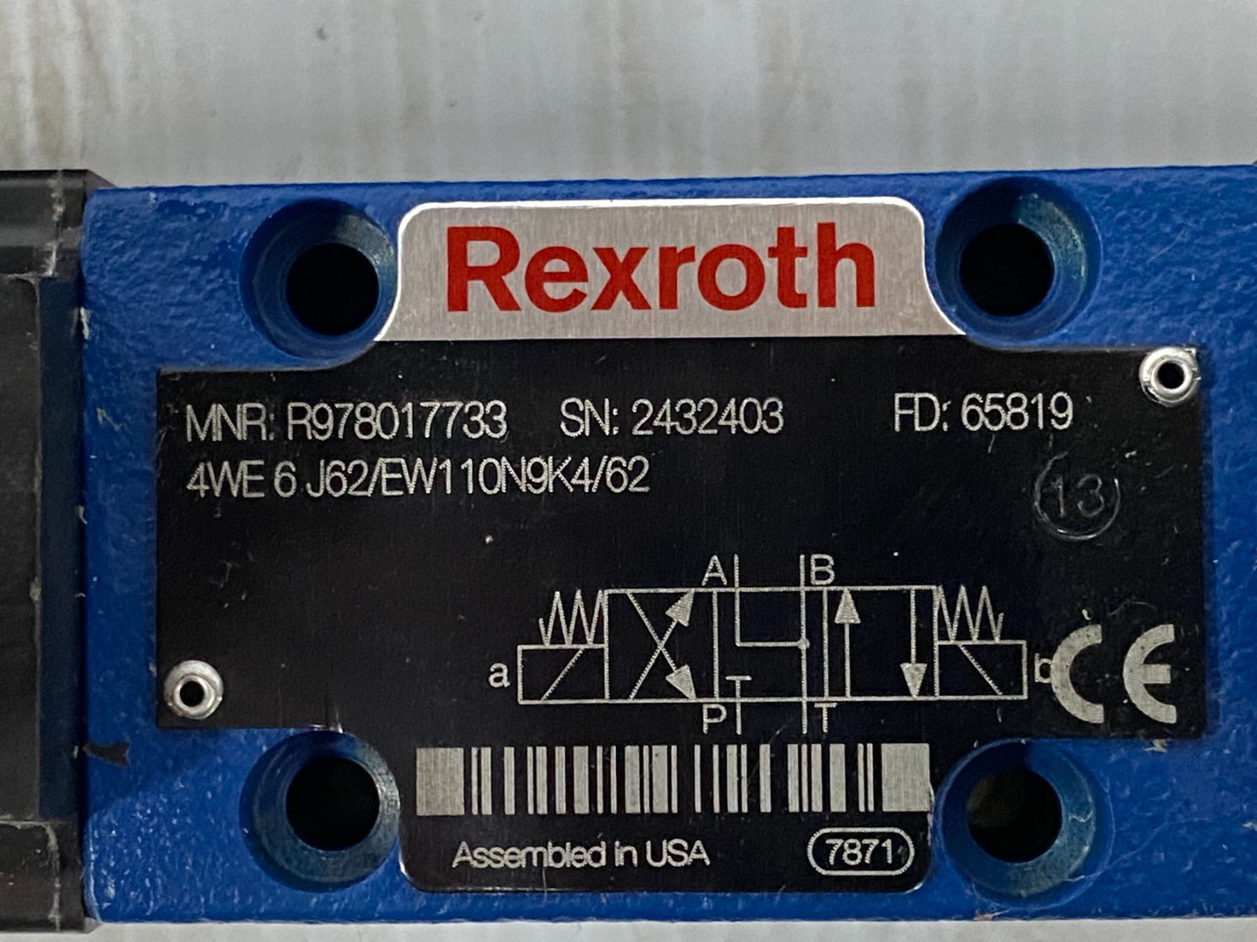 (2) Rexroth # 4WE 6 E62/EW110N9K4/62 Valves