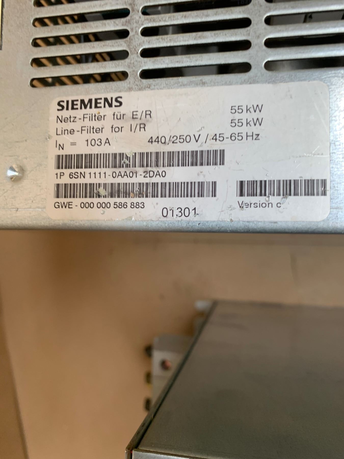 (2) SIEMENS 1P 6SN 1111-0AA01-2DAO LINE FILTERS