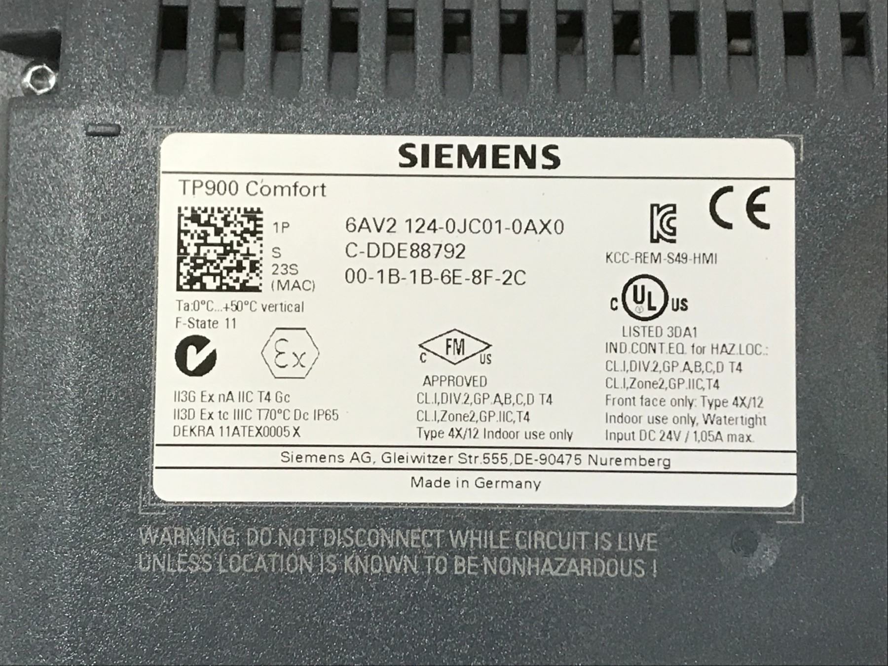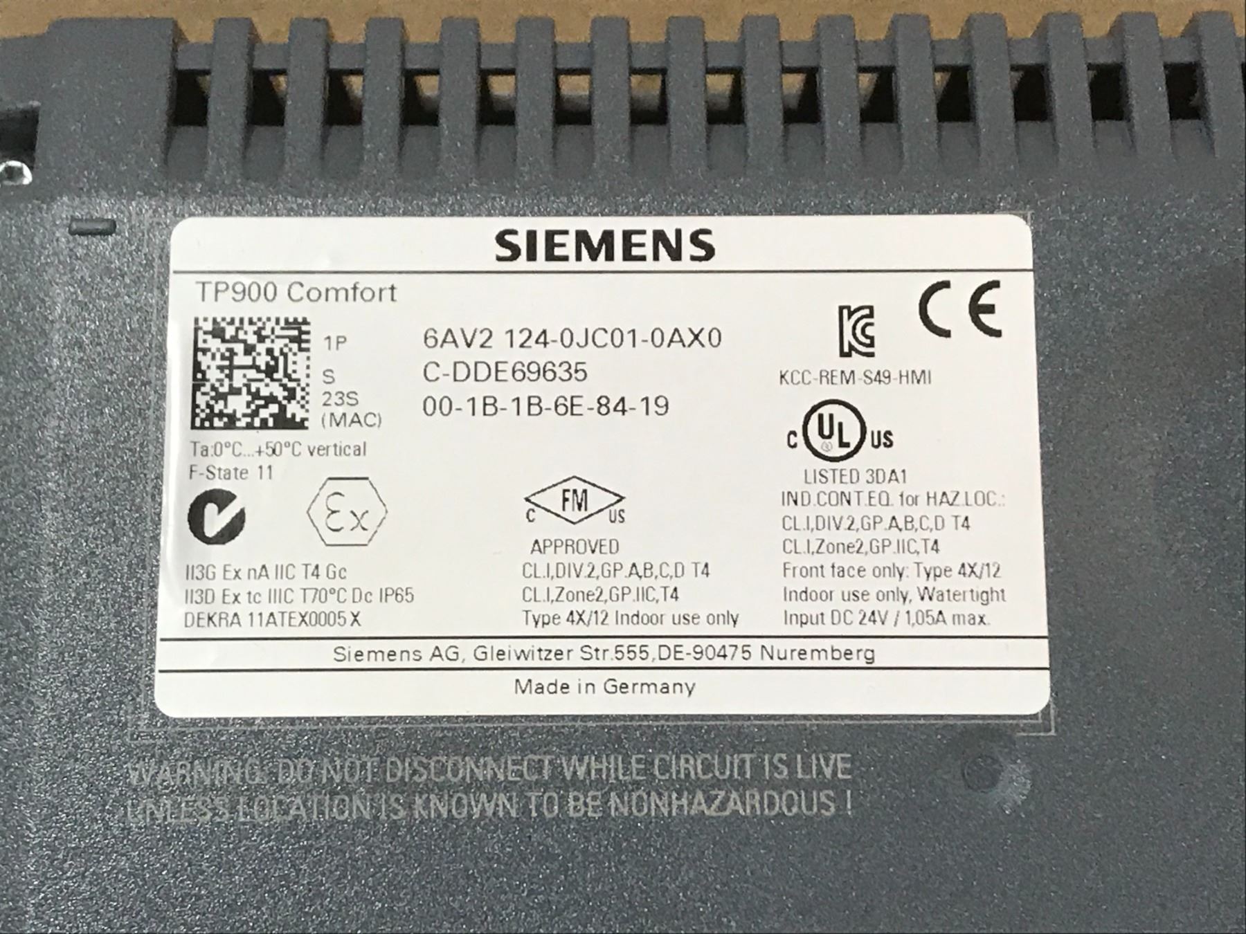 (2) SIEMENS 6AV2 124-0JC01-0AX0 TP900 COMFORT TOUCH PANEL