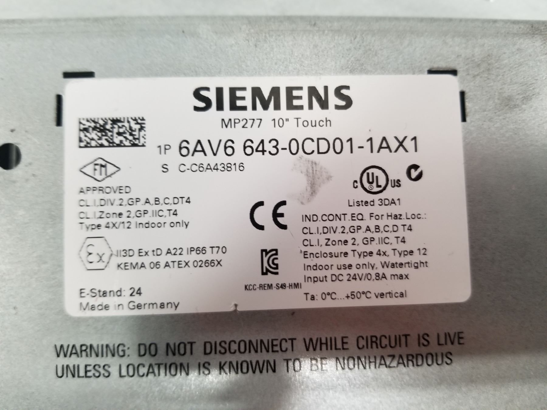 (2) SIEMENS 6AV6 643-0CD01-4AX1 TOUCH PANEL