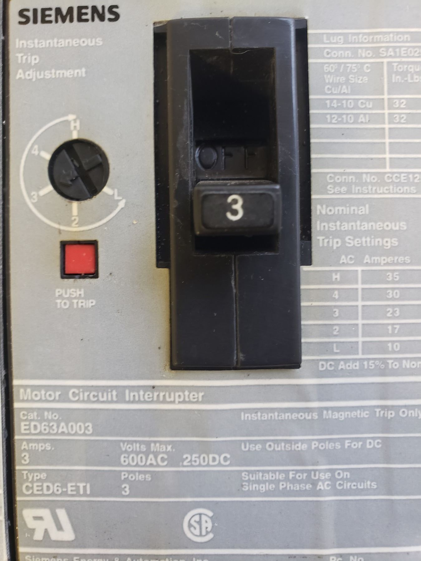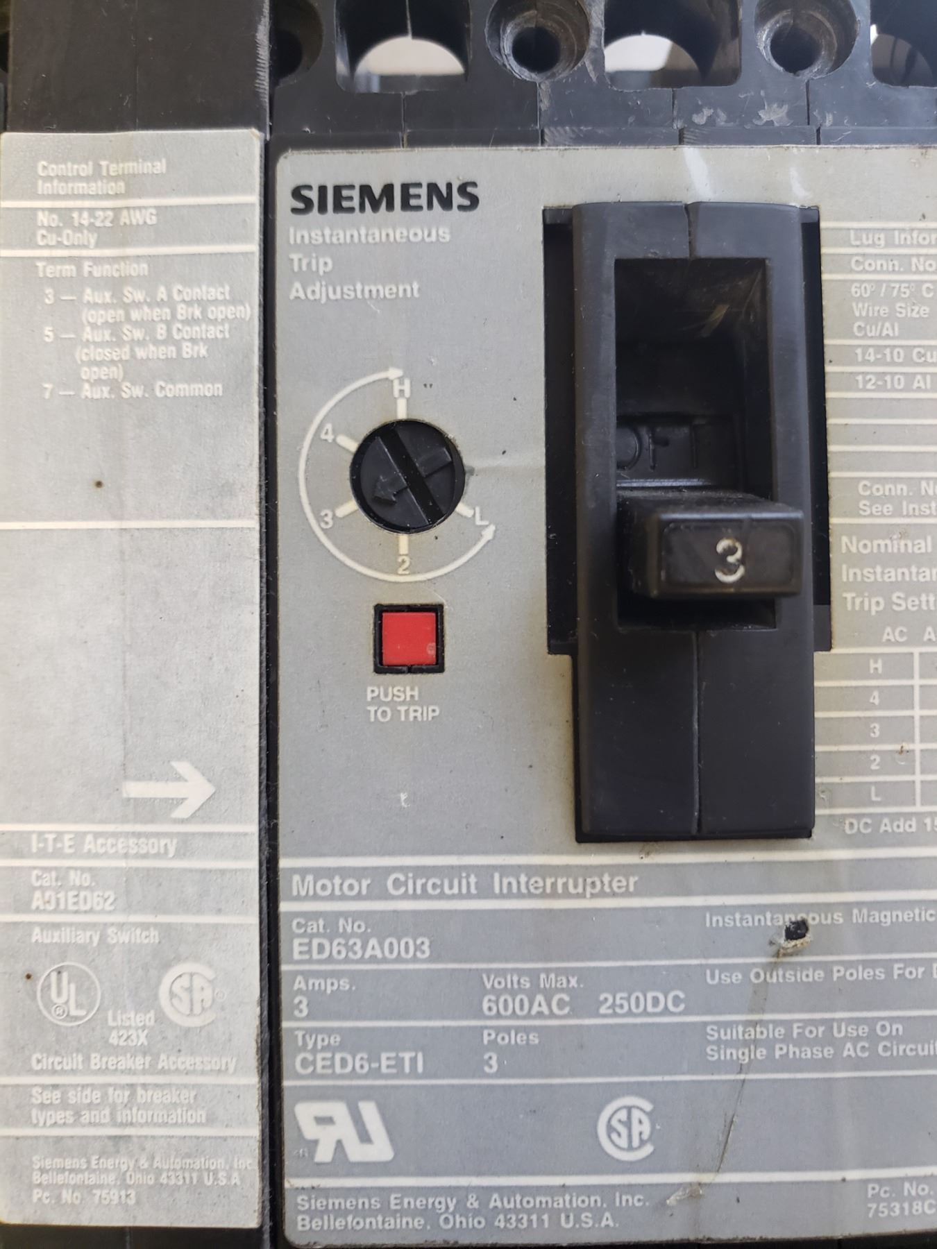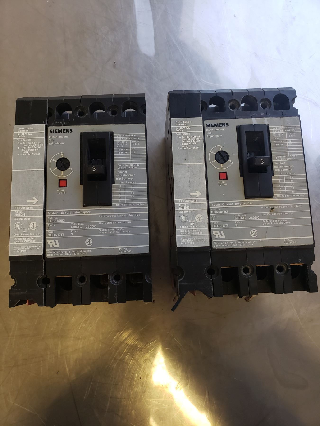 (2) SIEMENS ED63A003 MOTOR CIRCUIT INTERRUPTER