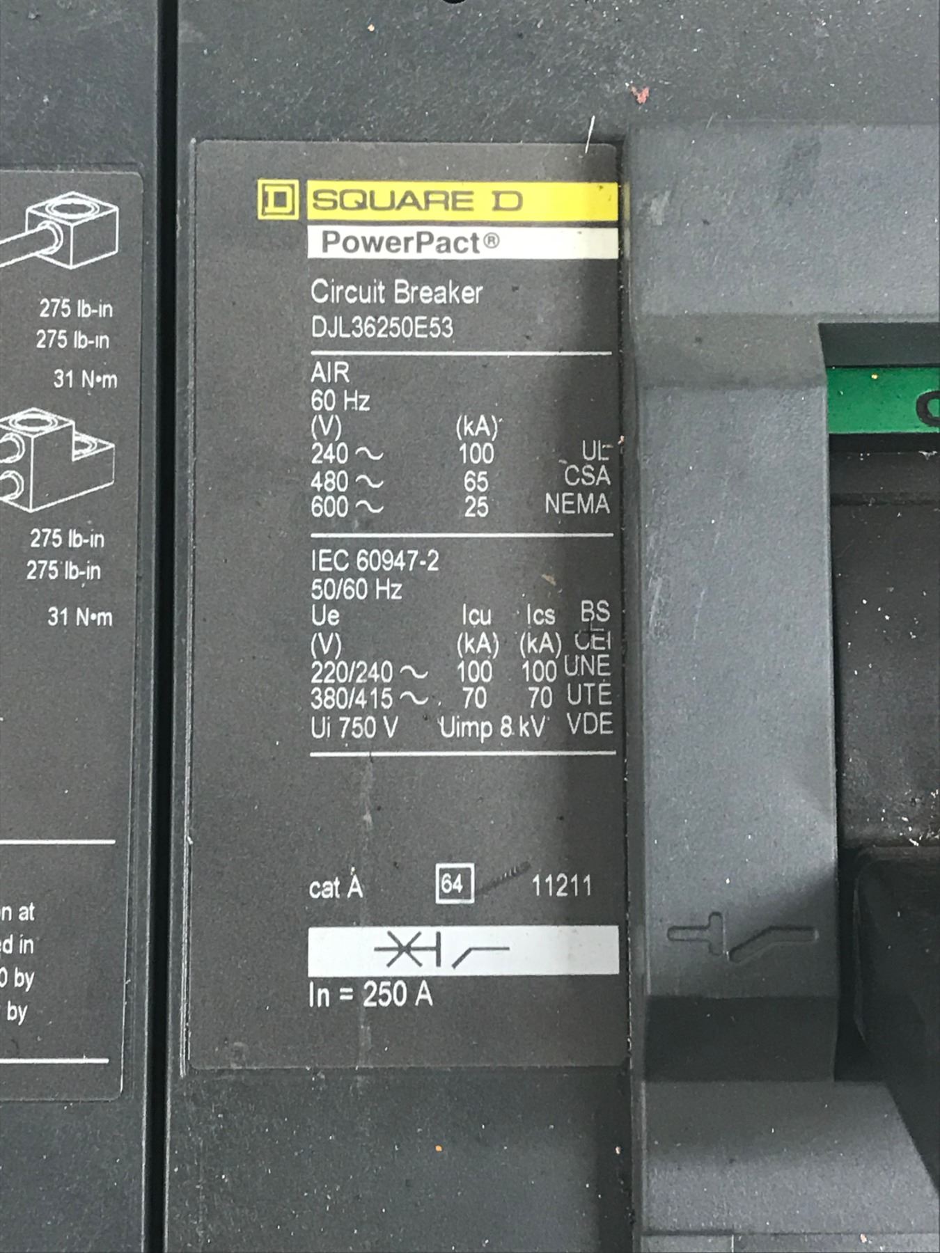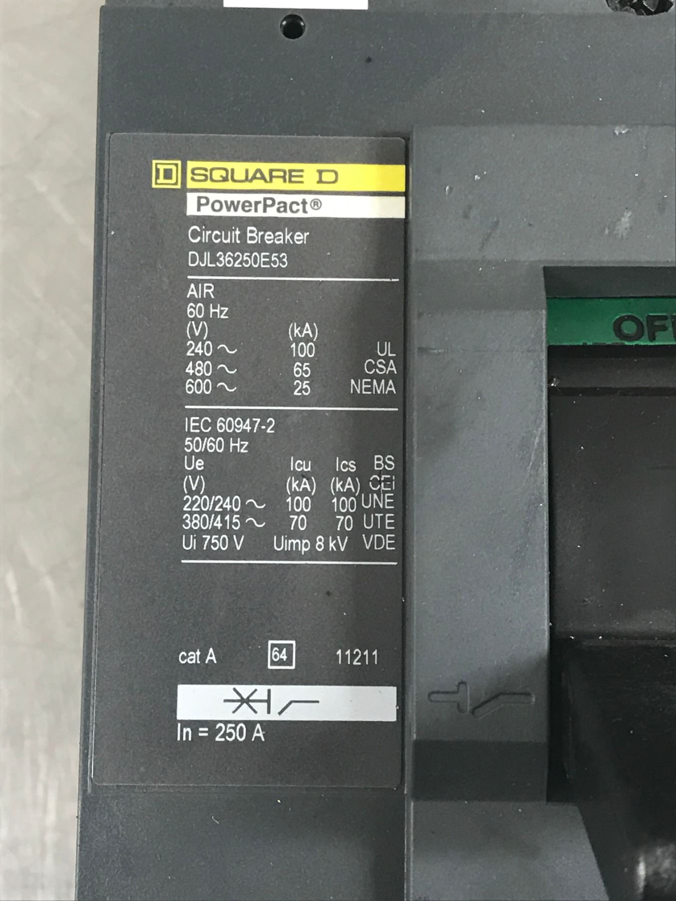 (2) SQUARE D DJL36250E53 CIRCUIT BREAKER