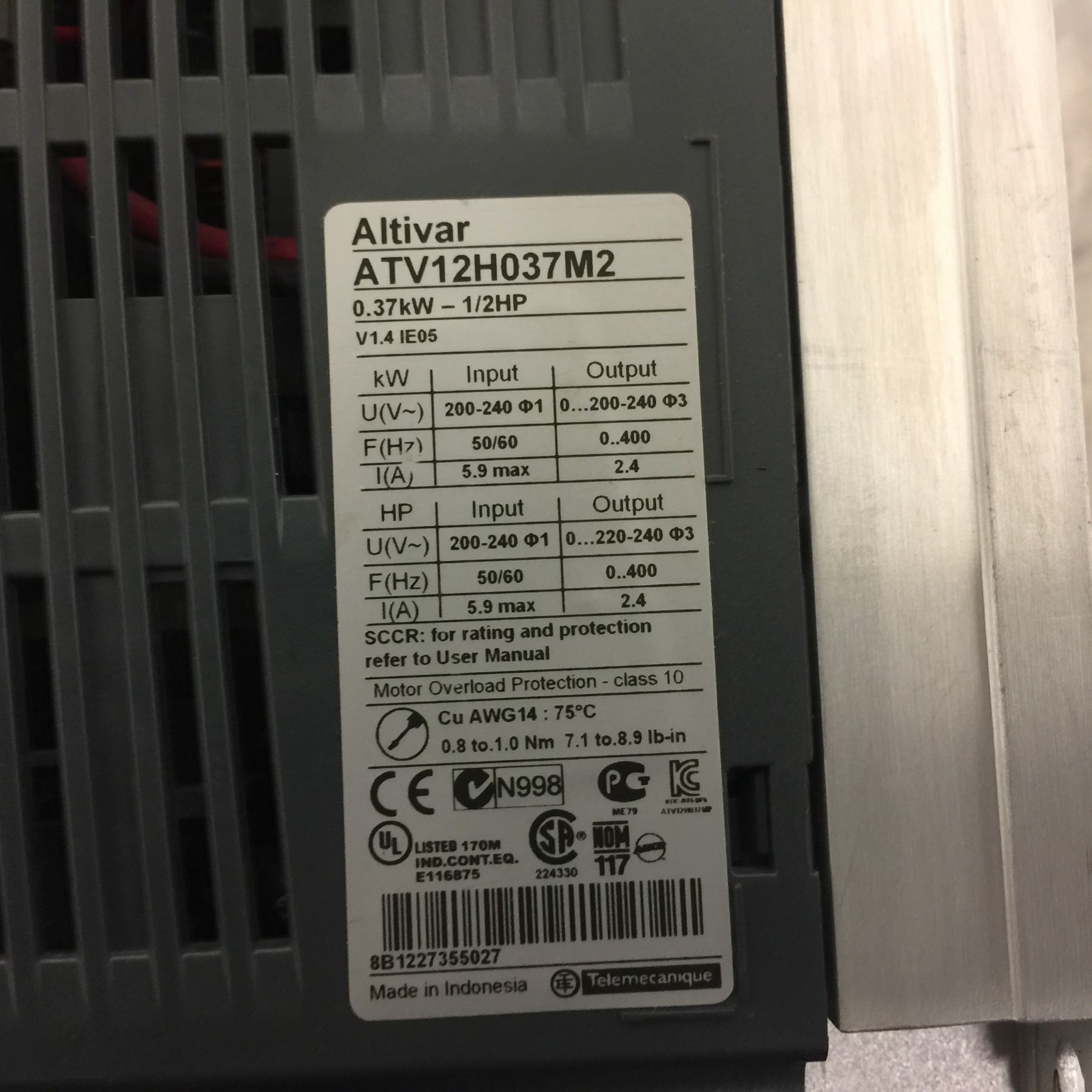 (2) Schneider Electric ATV12H037M2 Frequency Drive