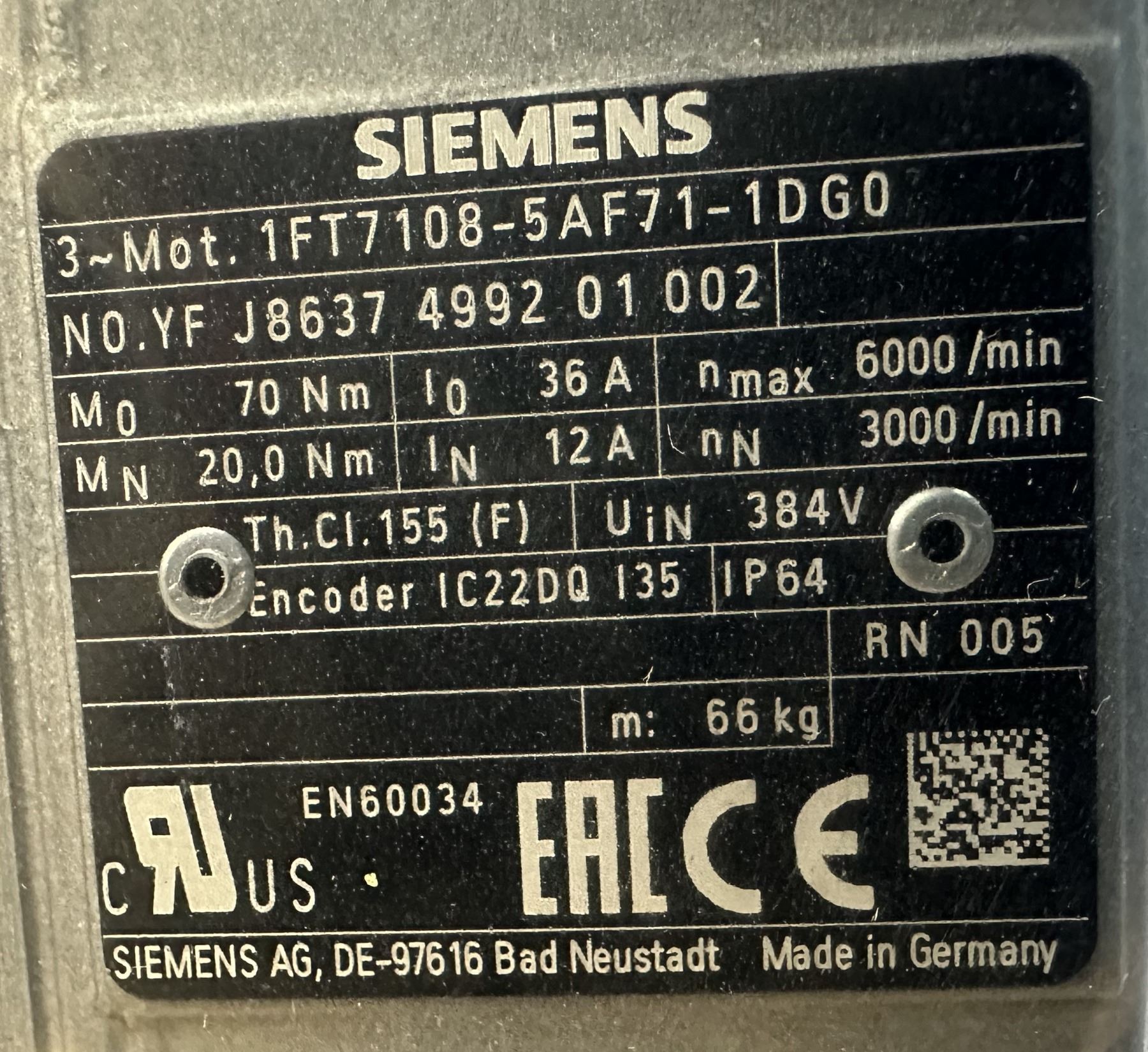 (2) - Siemens #1 FT7108-5AF71-1DG0 3-Phase Motors