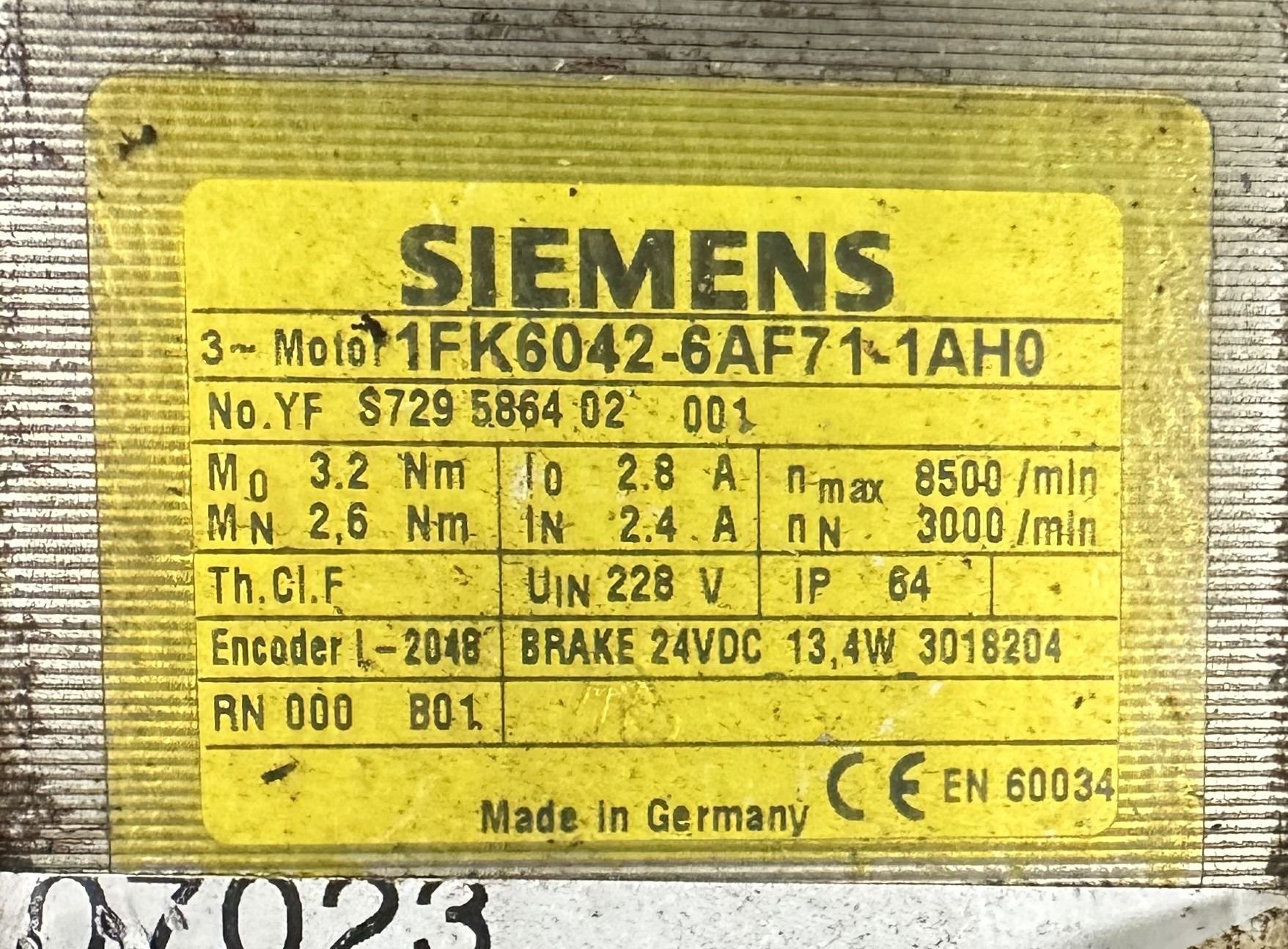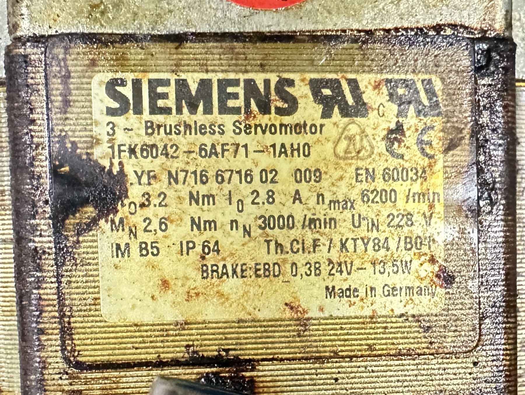 (2) Siemens #1FK6042-6AF71-1AH0 3~Motors