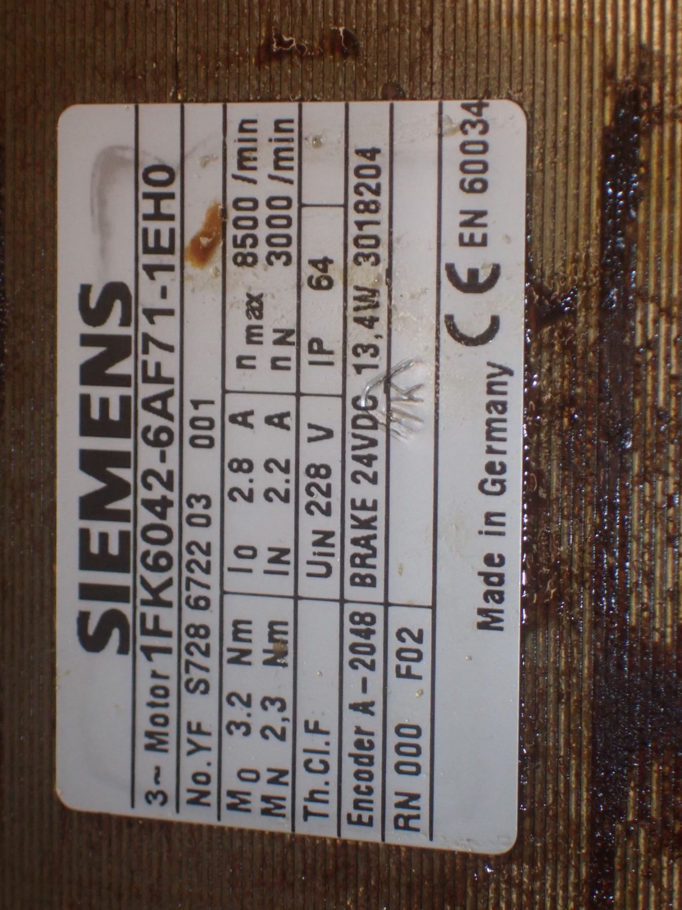 (2) Siemens # 1FK6042-6AF71-1EH0 Servo Motors