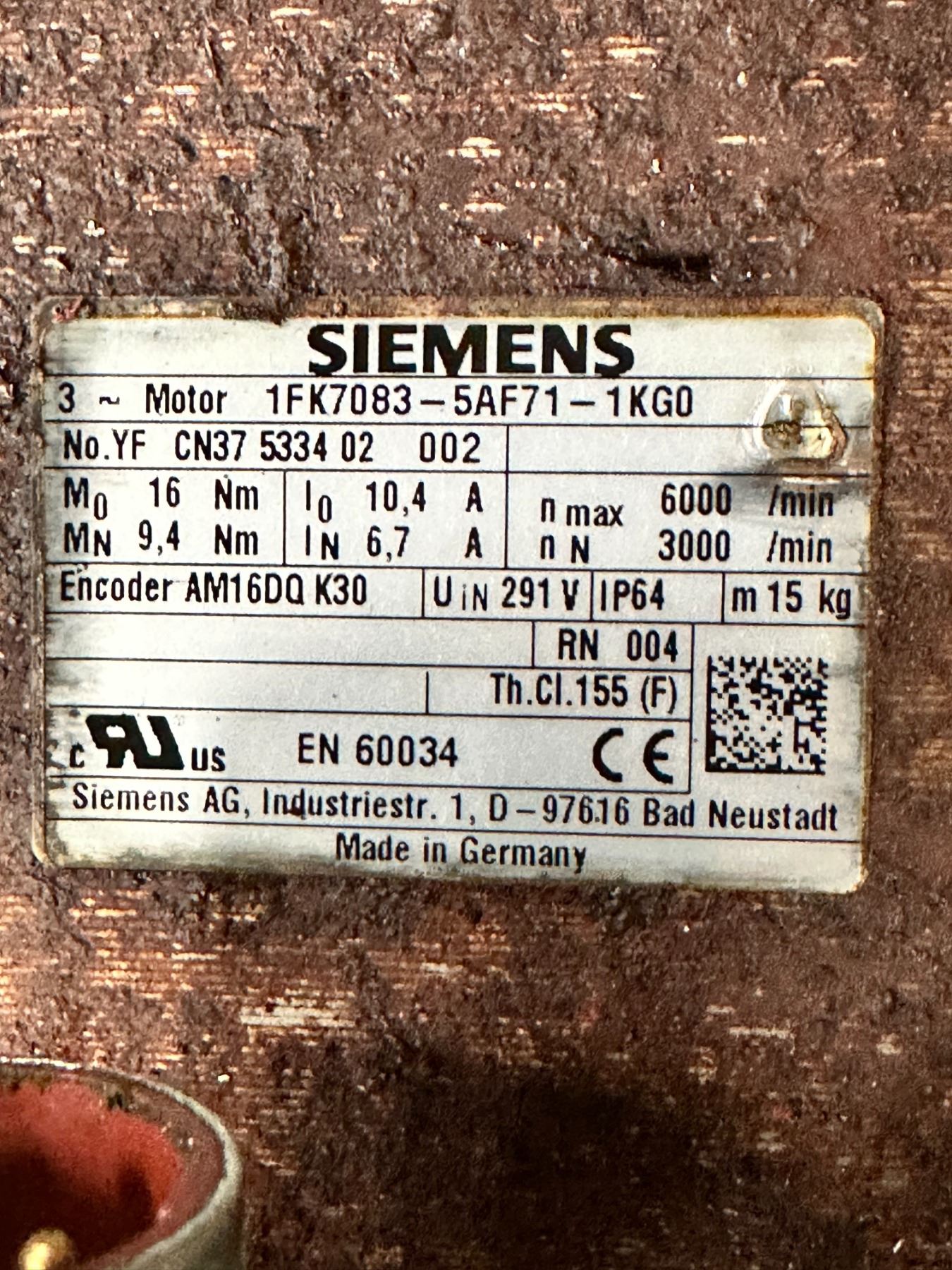 (2) Siemens #1FK7083-5AF71-1KG0 Motors