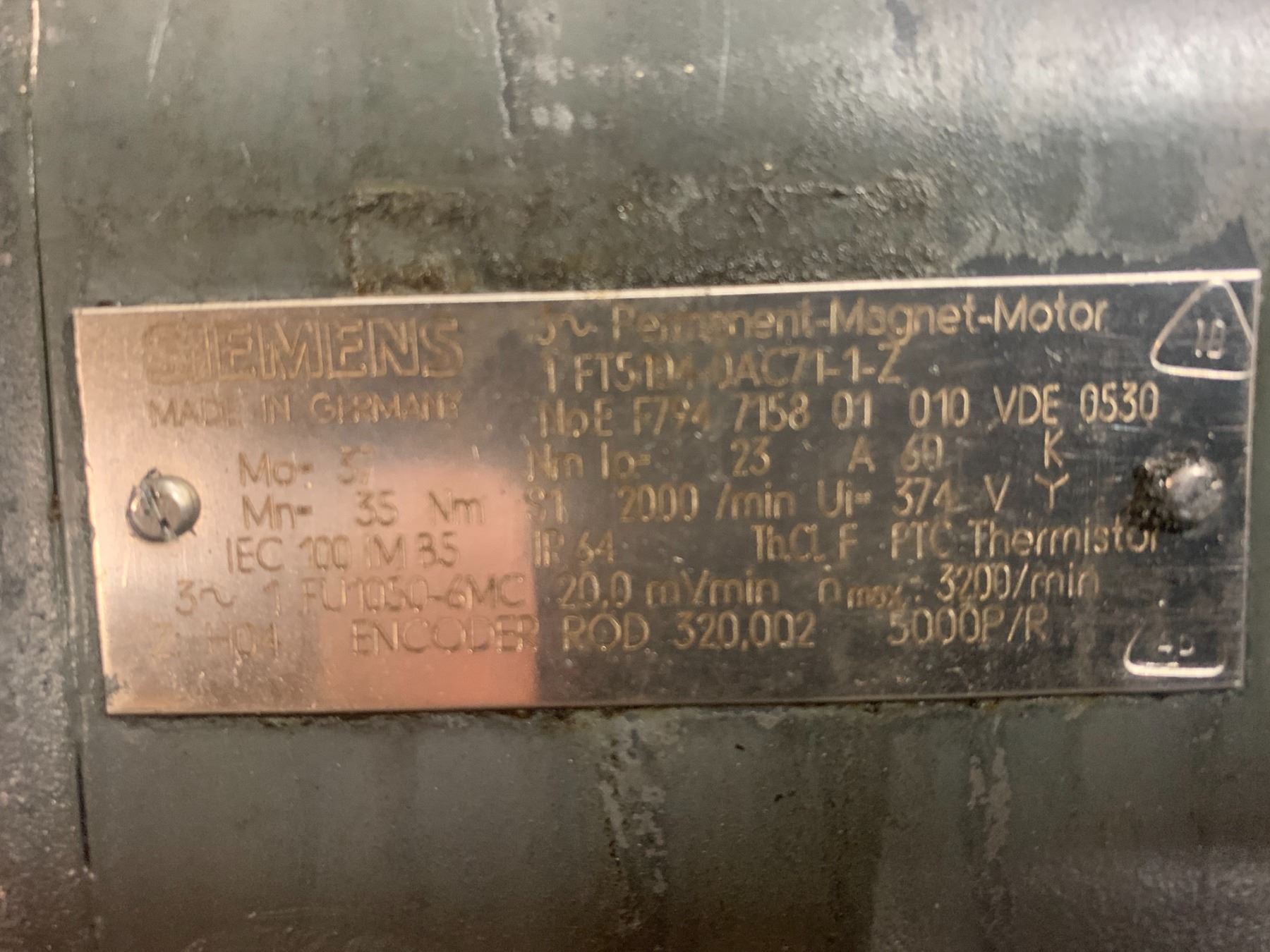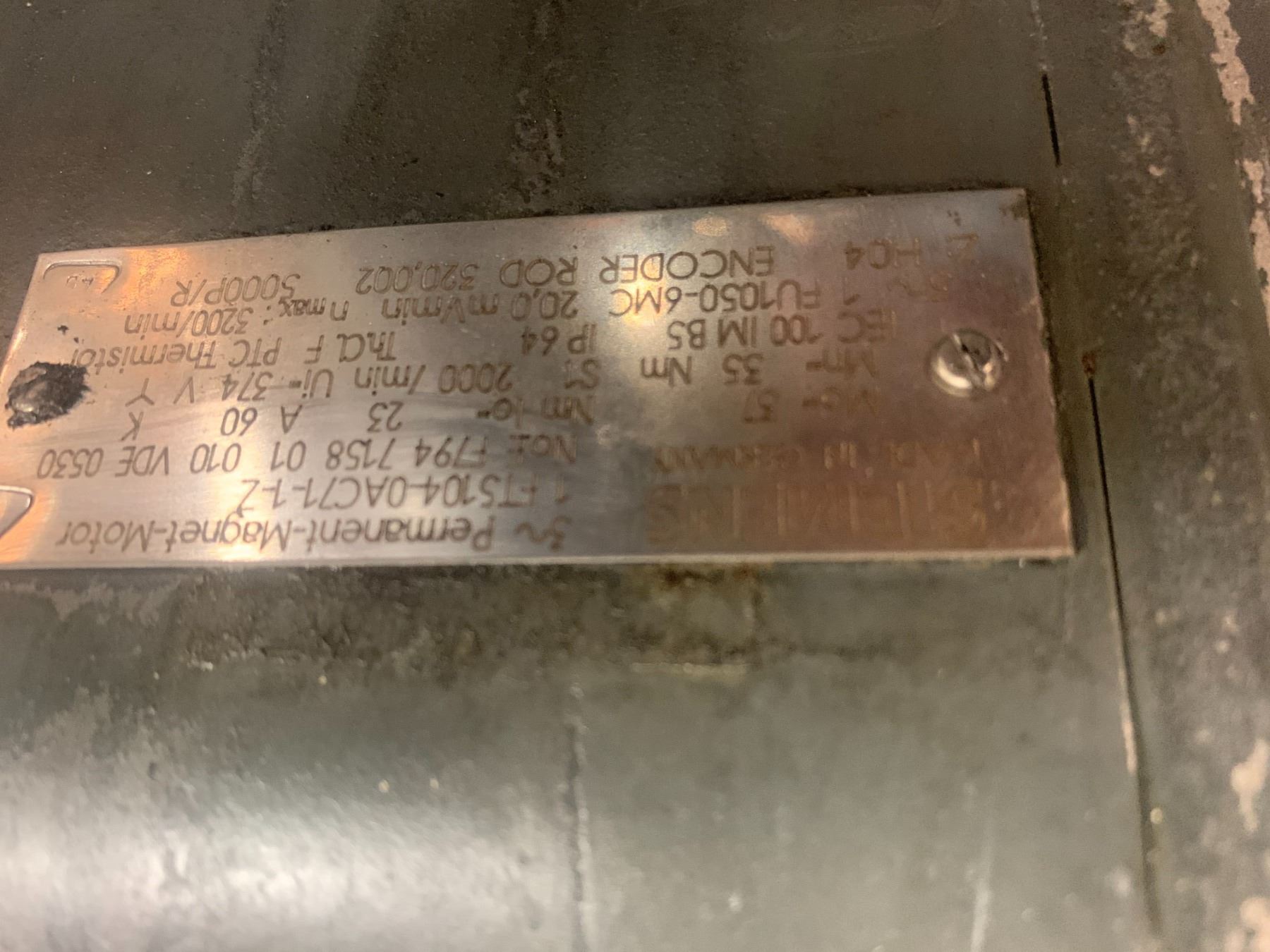 (2) Siemens 1FT5104-0AC71-1-Z Permanent Magnet Motor