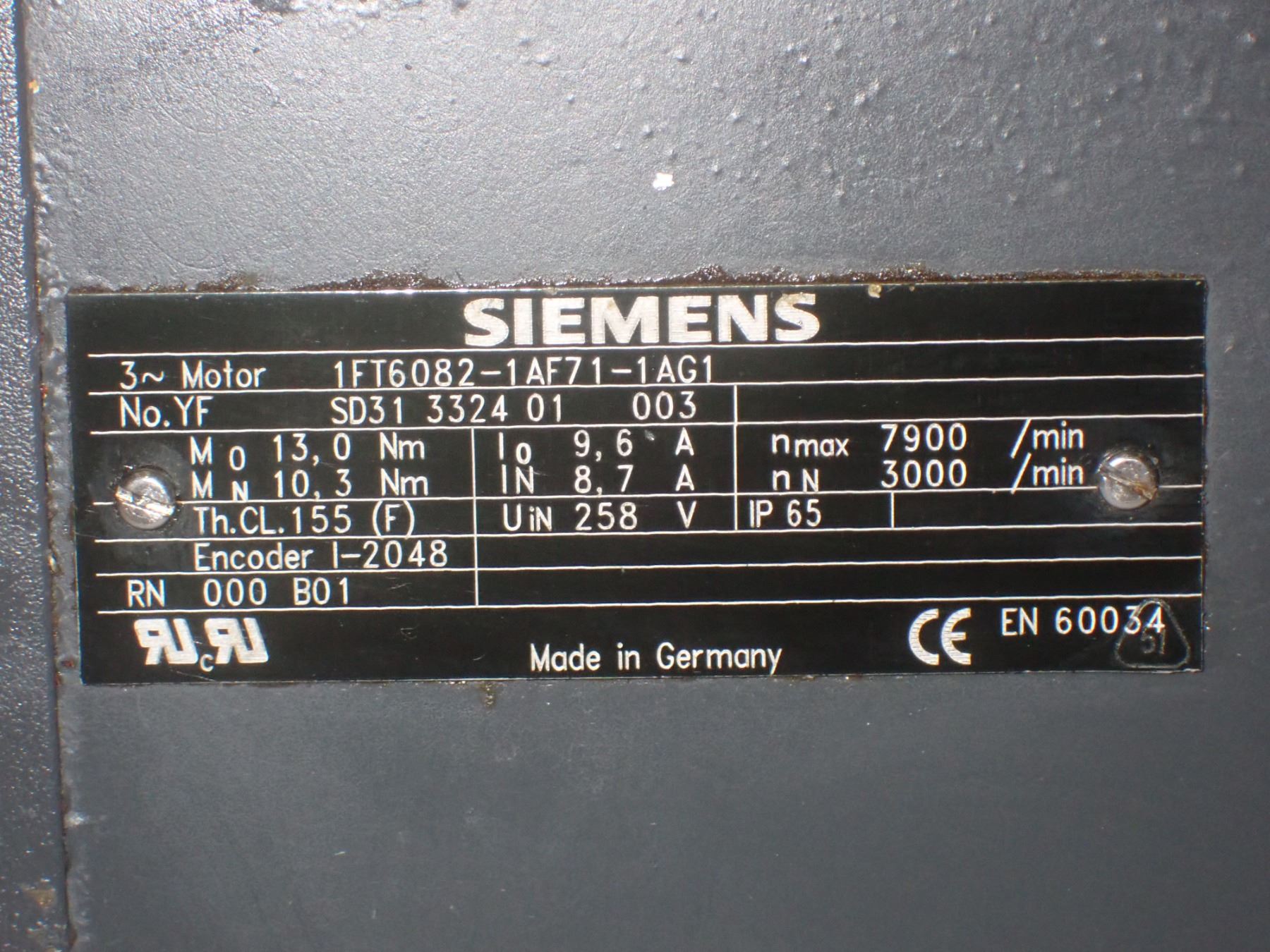 (2) Siemens # 1FT6082-1AF71-1AG1 Motor