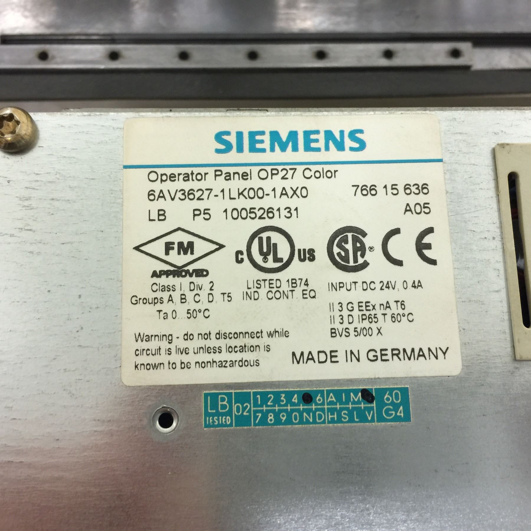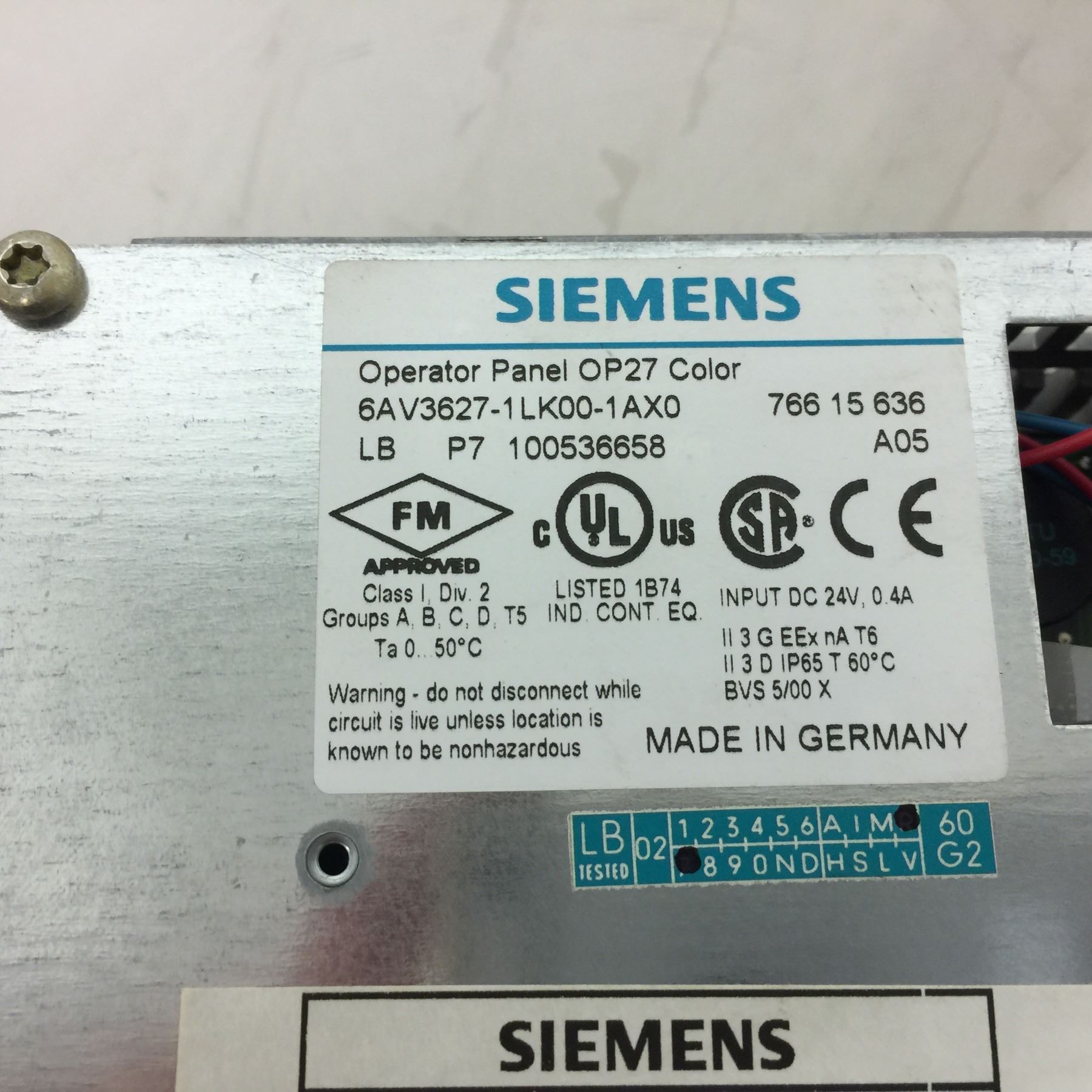 (2) Siemens 1P 6AV3627-1 LK00-1AX0 Operator Panel OP27 Color