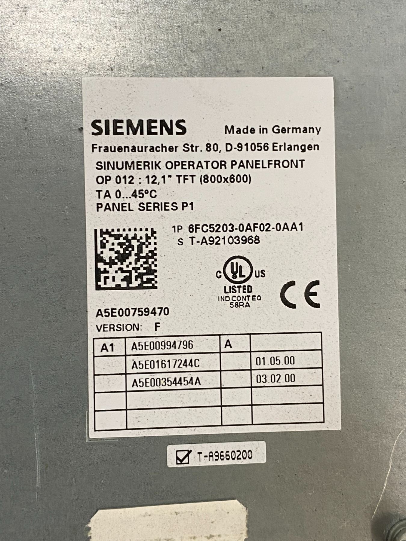 (2) Siemens # 1P 6FC5203-0AF02-0AA1, 1P 6FC5203-0AF02-0AA2 Screens