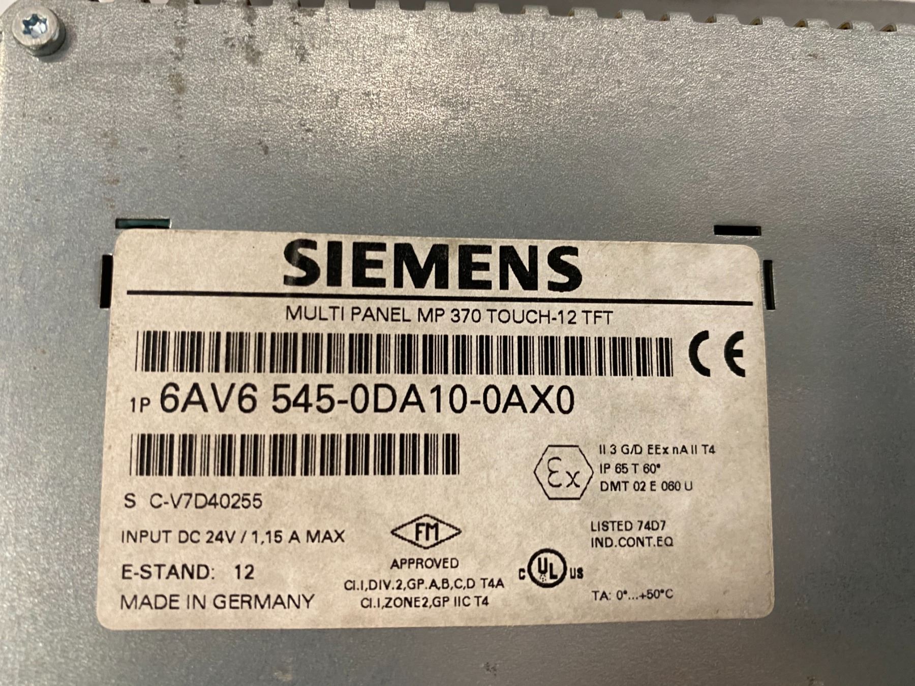 (2) - Siemens 6AV6 545-0DA10-0AX0 MultiPanel MP370 Touch 12TFT