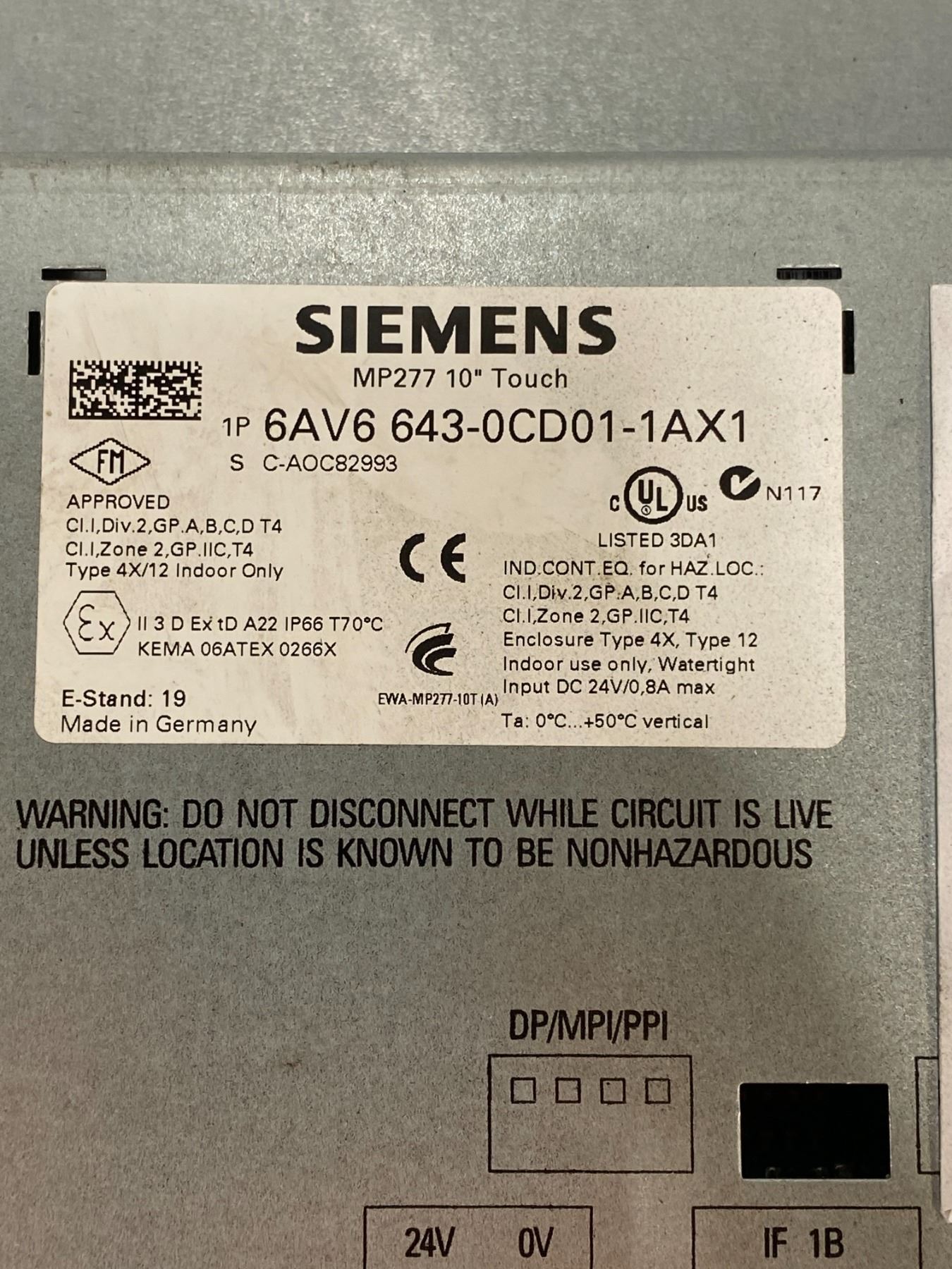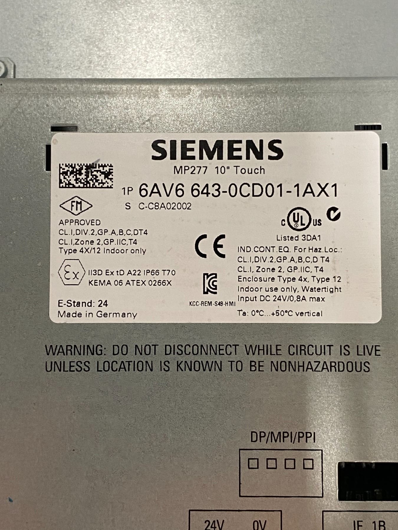 (2) - Siemens 6AV6 643-0CD01-1AX1 MP277 10" Touch Screens