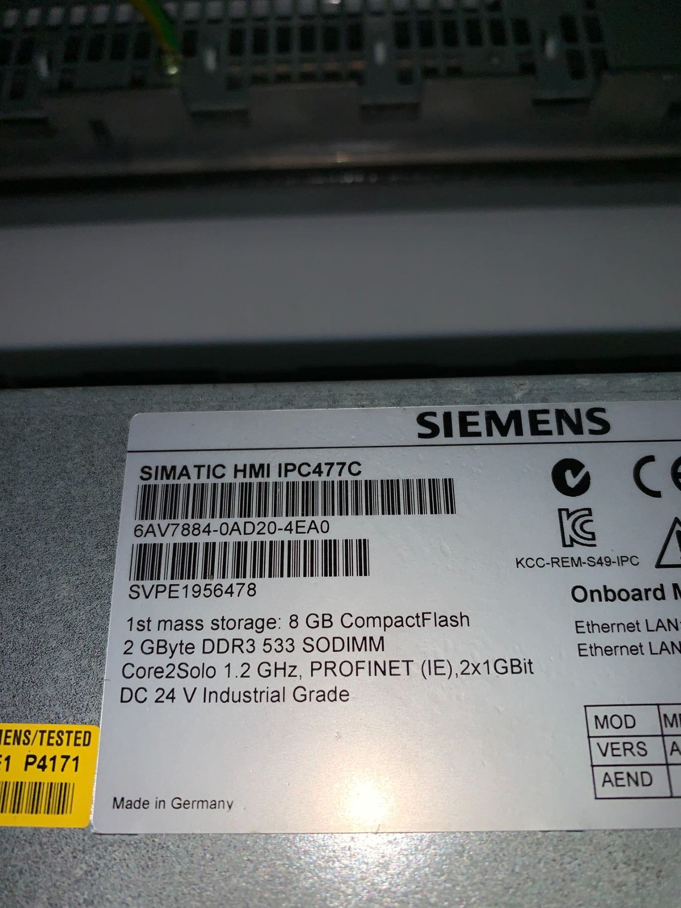 (2) - Siemens 6AV7884-0AD20-4EA0 Simatic HMI IPC477C Panels