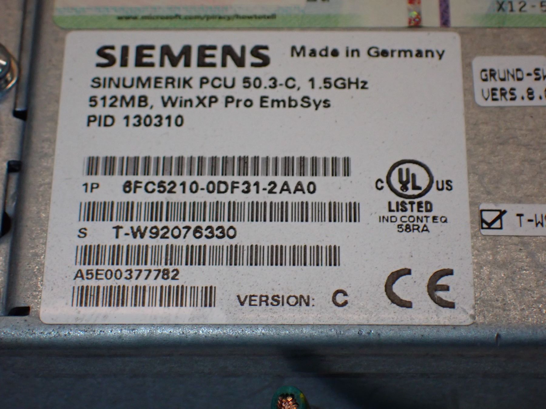 (2) Siemens #6FC5210-0DF31-2AA0 Sinumerik PCU 50.3-C_6FC5247-0AF08-4AA0