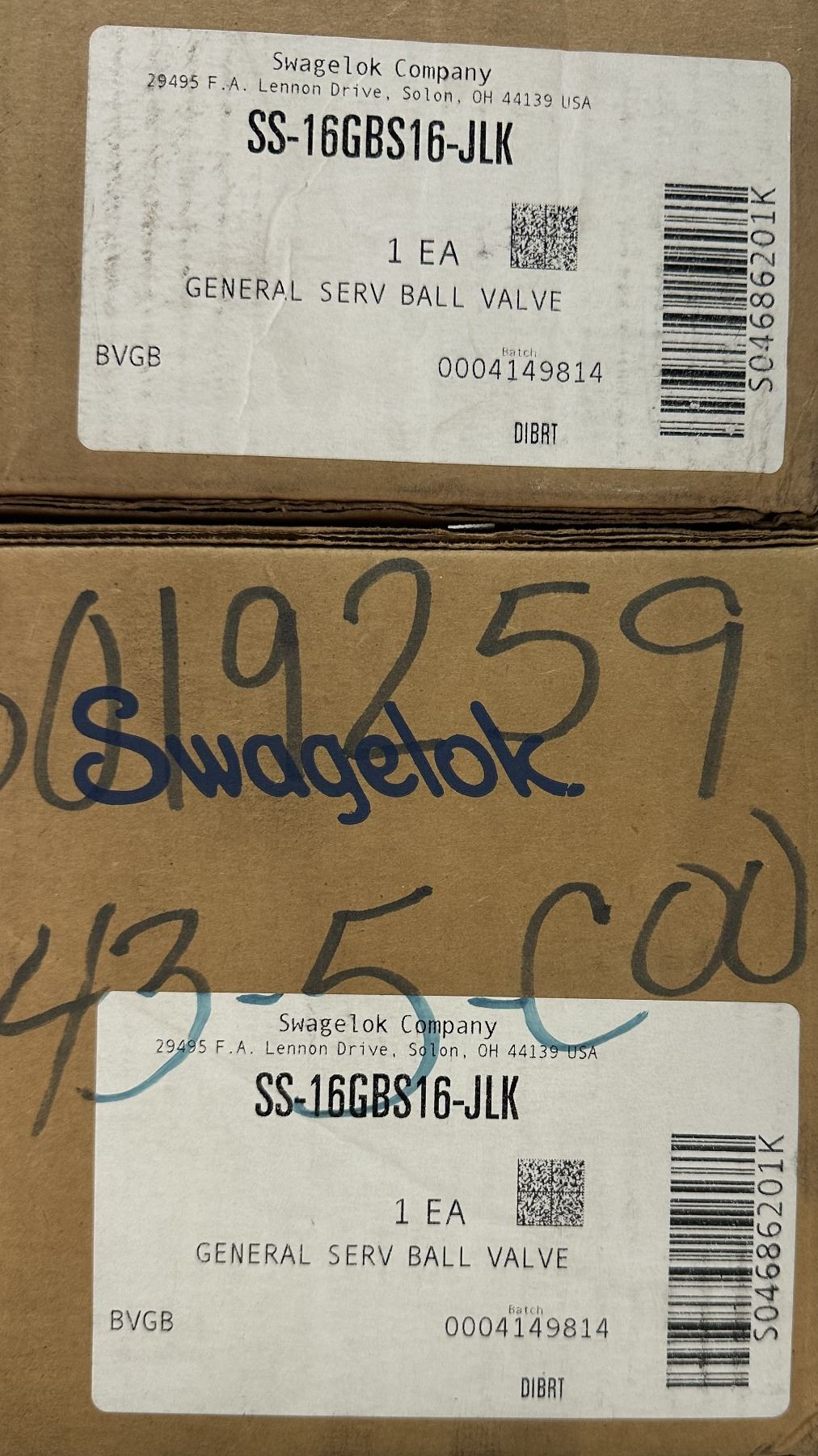 (2) Swagelok #SS-16GBS16-JLK Ball Valves