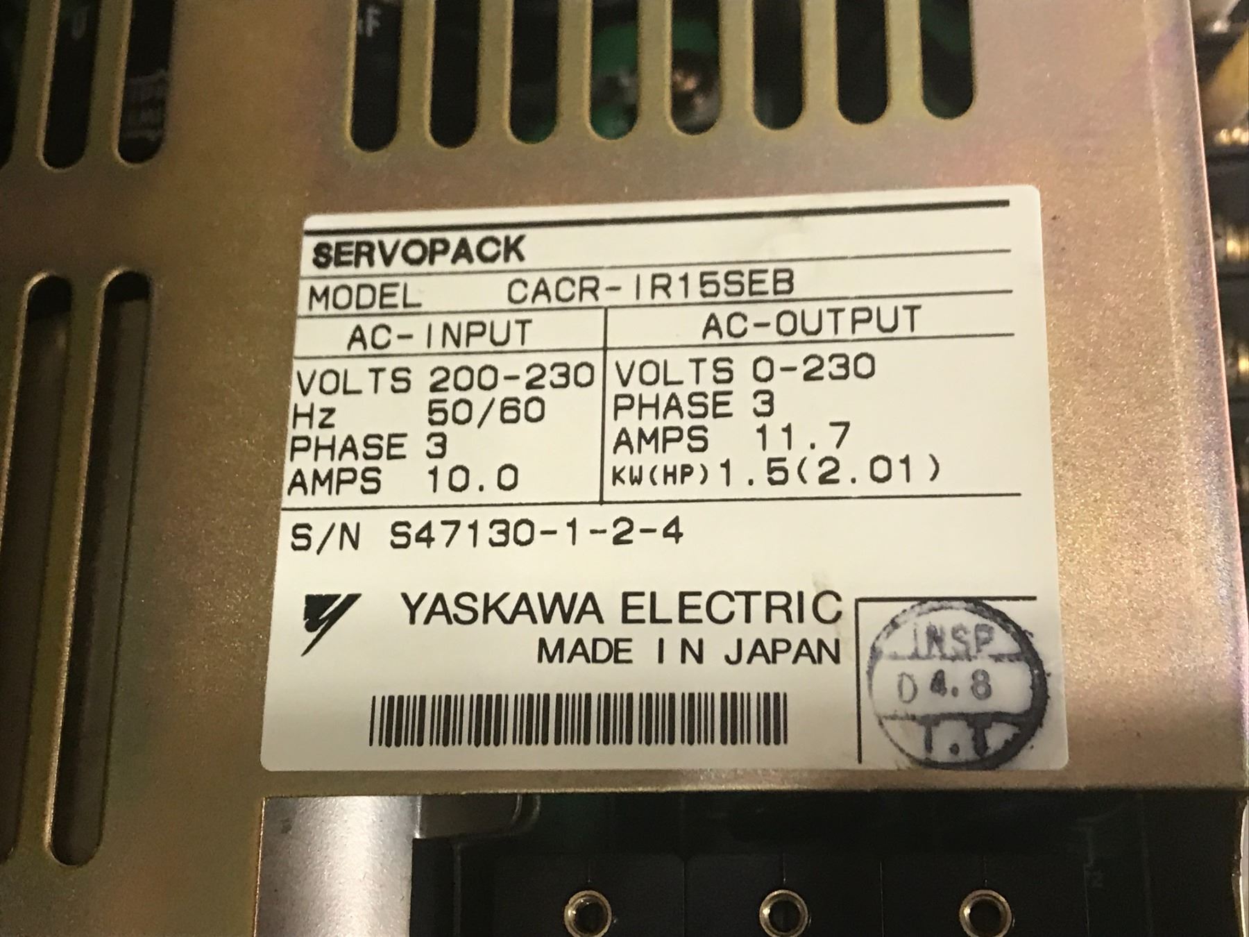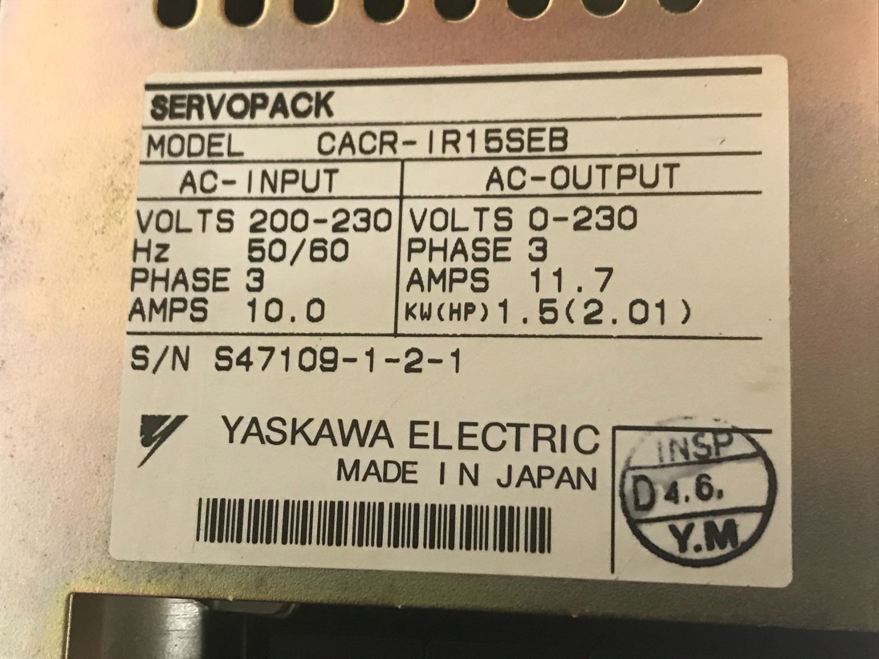 (2) YASKAWA CACR-IR15SEB SERVO PACK