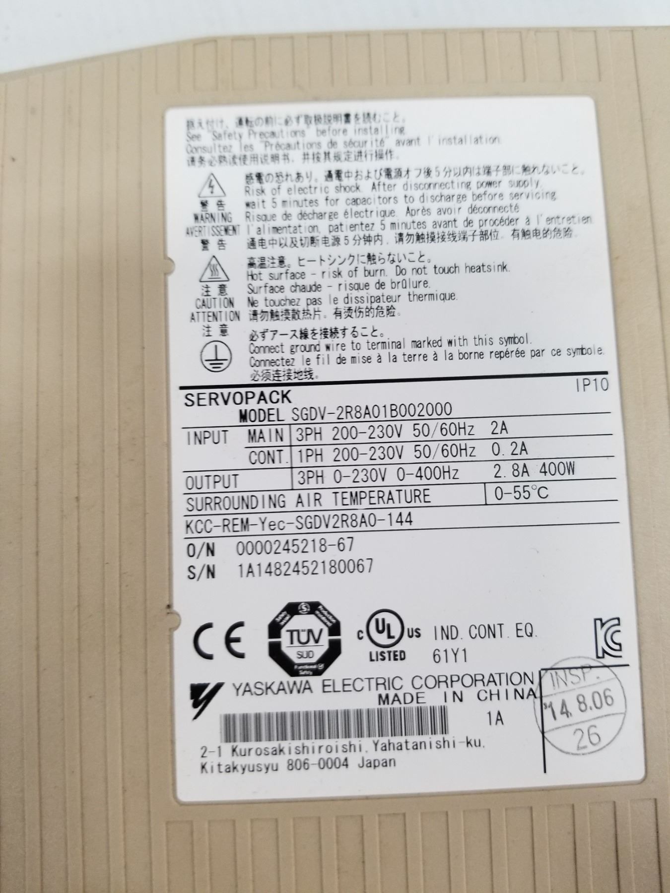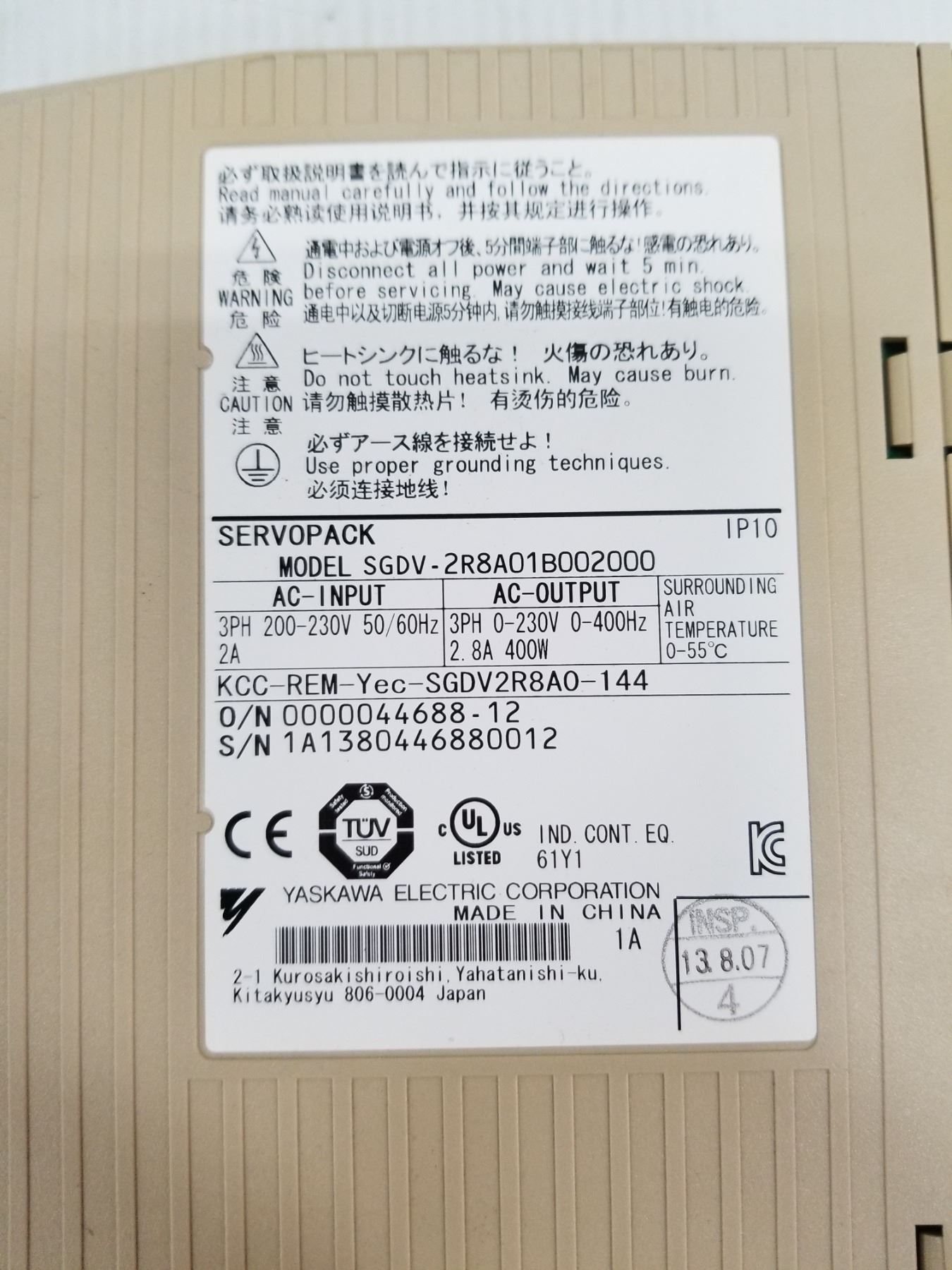 (2) YASKAWA SGDV-2R8A01B002000 SERVOPACK AC SERVO DRIVE