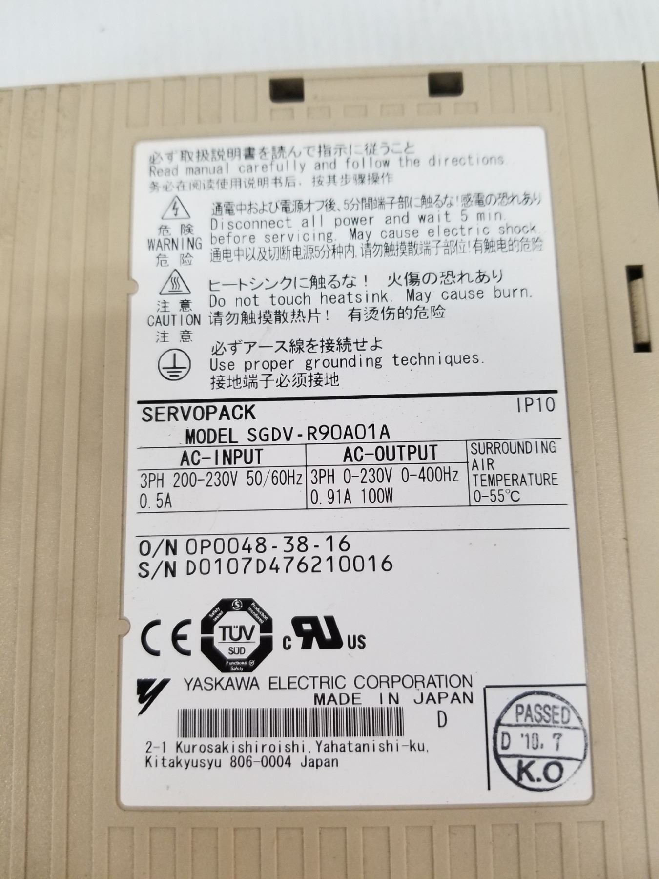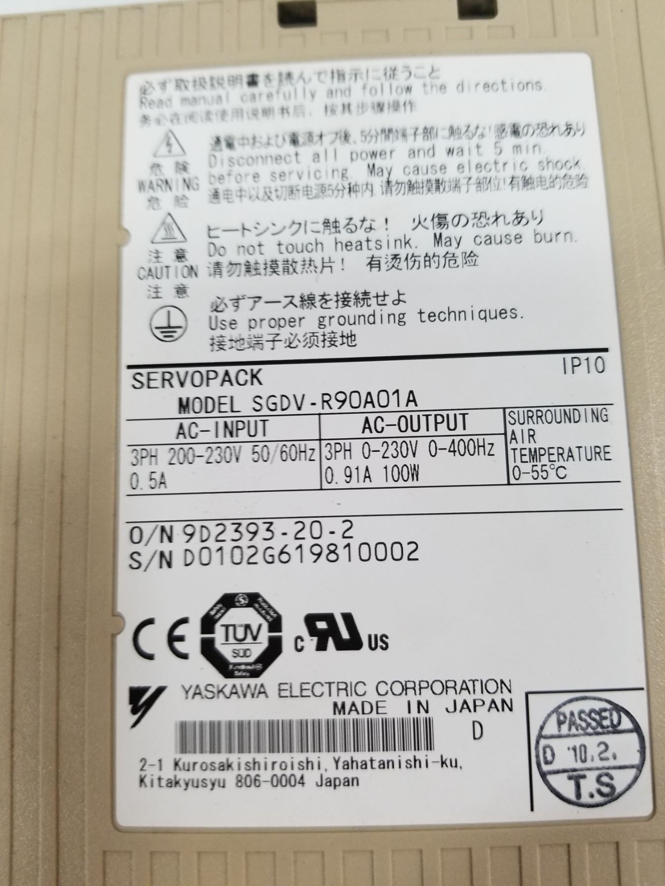 (2) YASKAWA SGDV-R90A01A SERVOPACK AC SERVO DRIVE