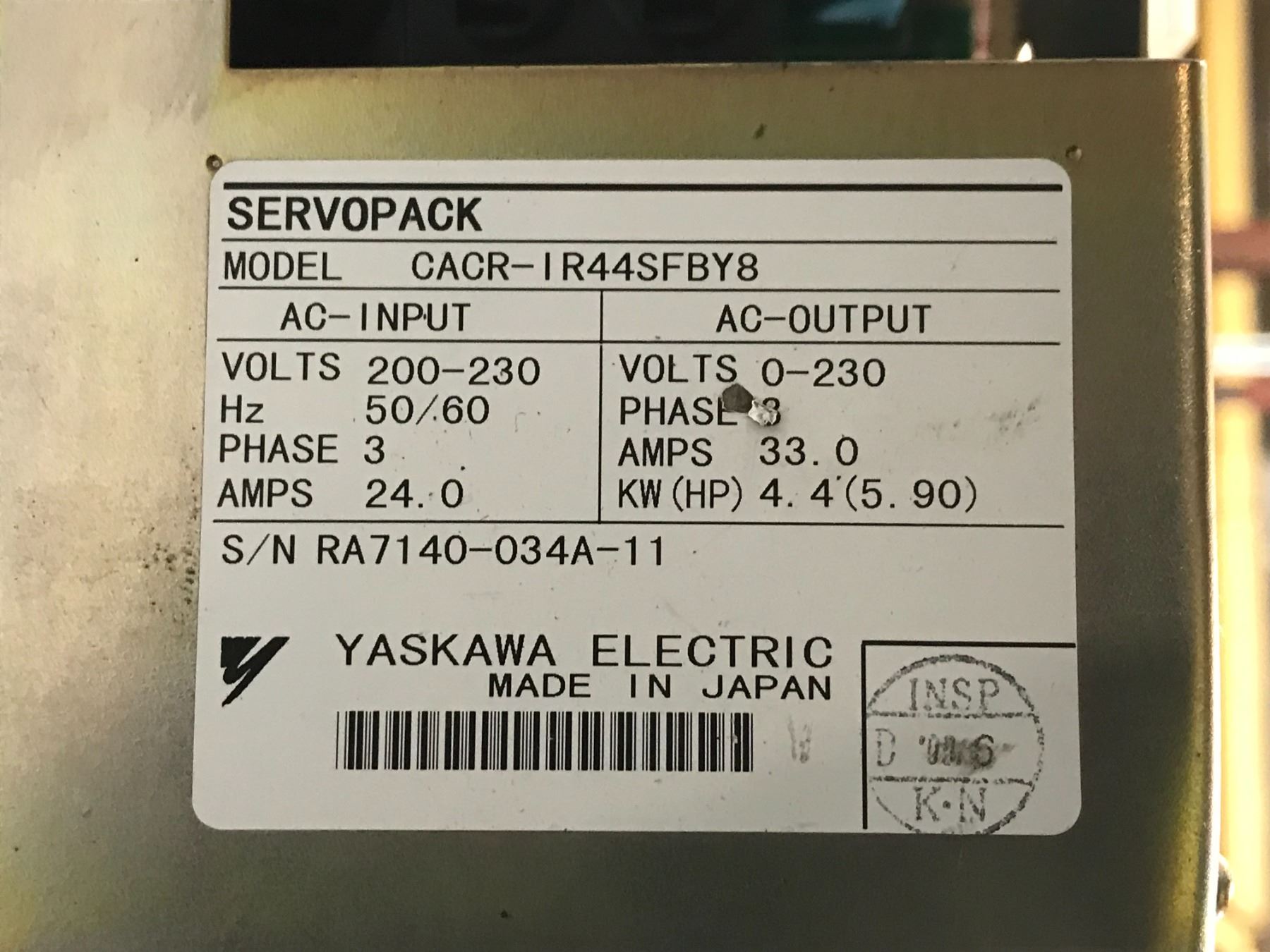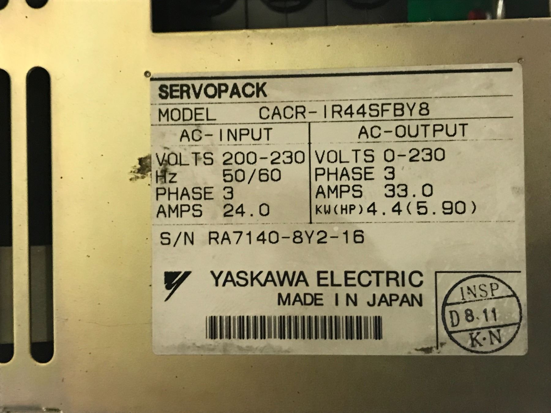 (2) Yaskawa #CACR-IR44SFBY8 Servo Drive