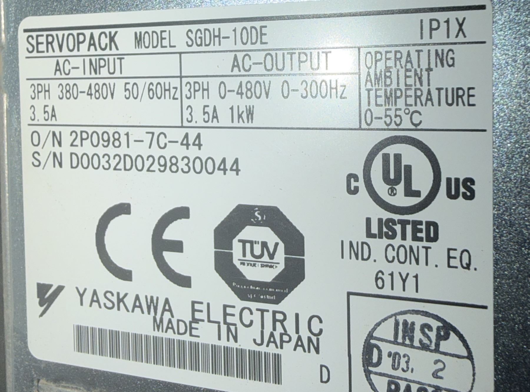 (2) Yaskawa #SGDH-10DE Servopacks