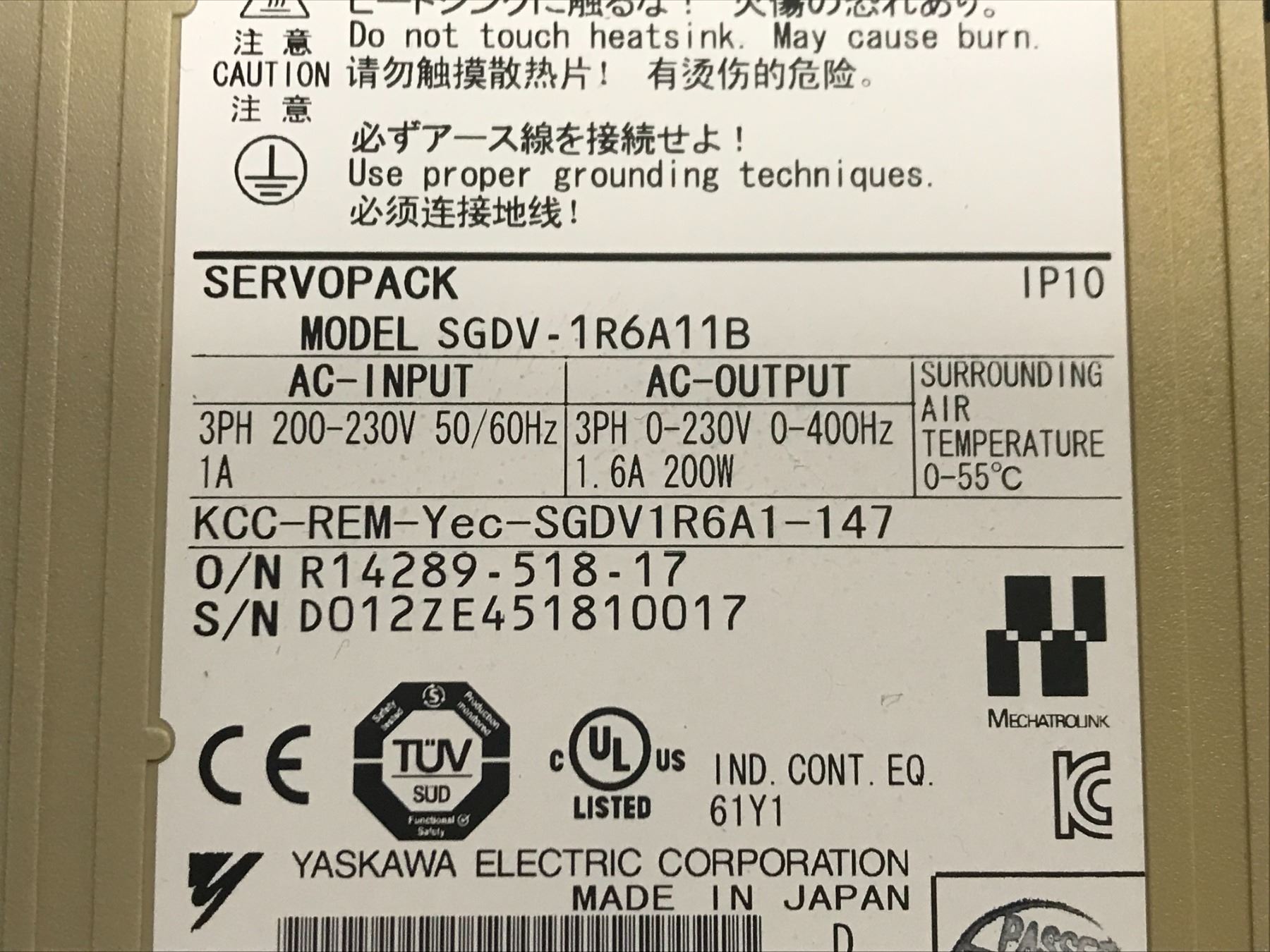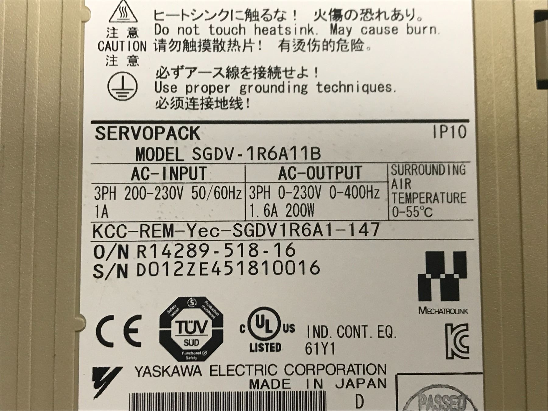 (2) Yaskawa #SGDV-1R6A11B Servo Drive