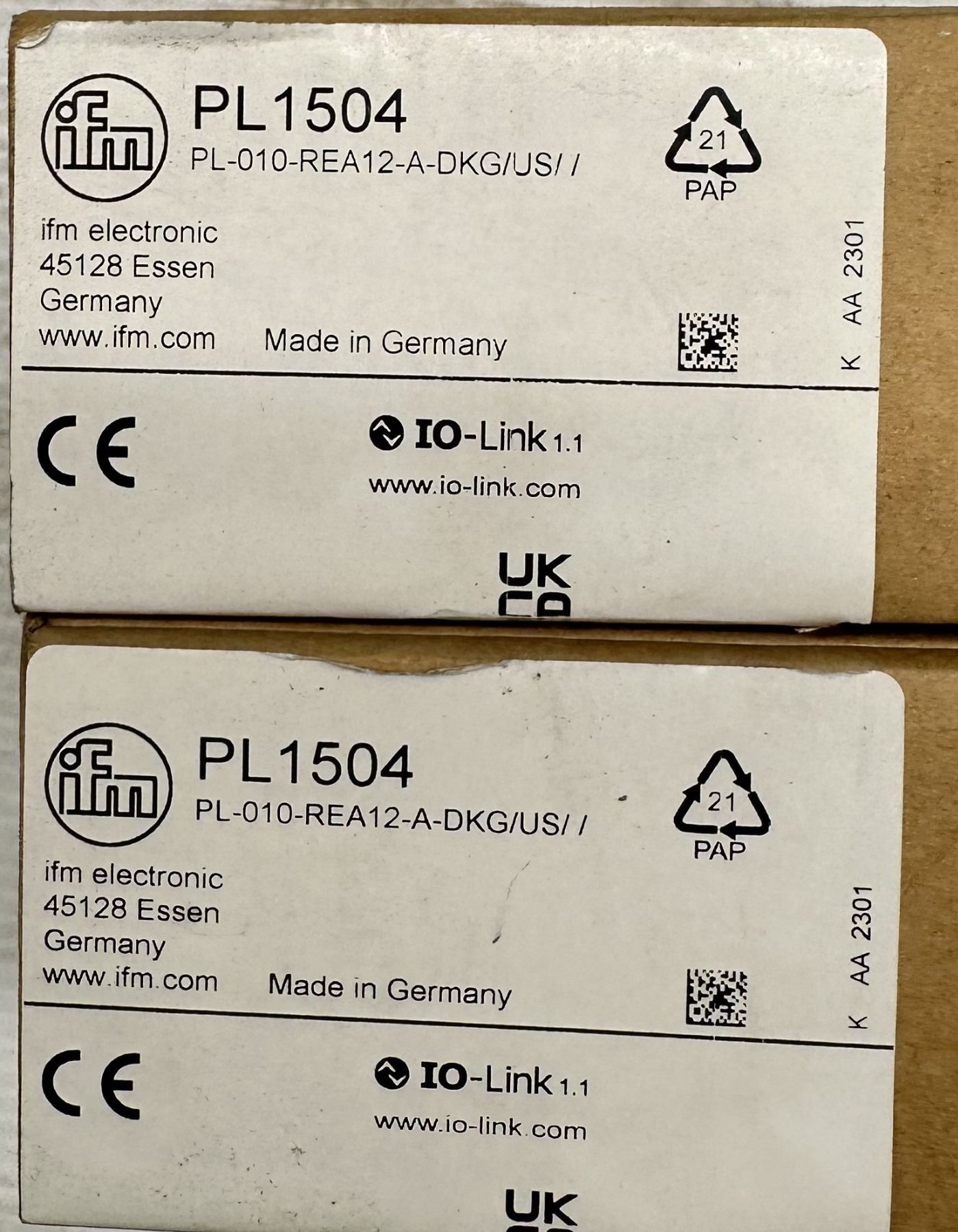 (2) ifm #PL1504 Pressure Transmitters