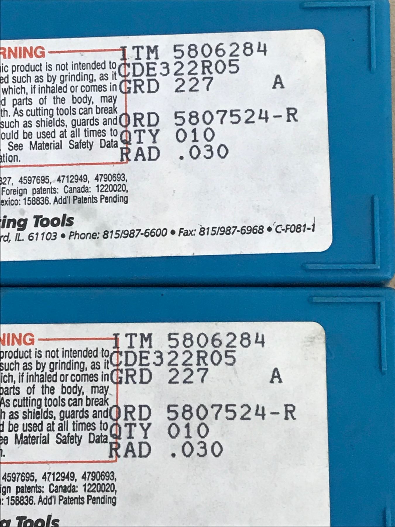 (20) INGERSOLL ITM 5806284 CDE322R05 CARBIDE INSERT