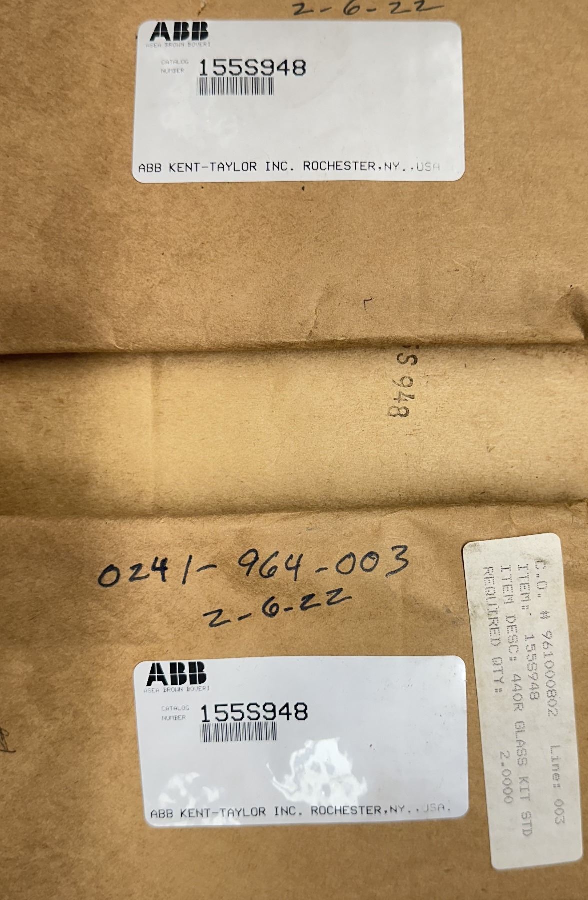 (3) ABB #155S948 Glass Kits