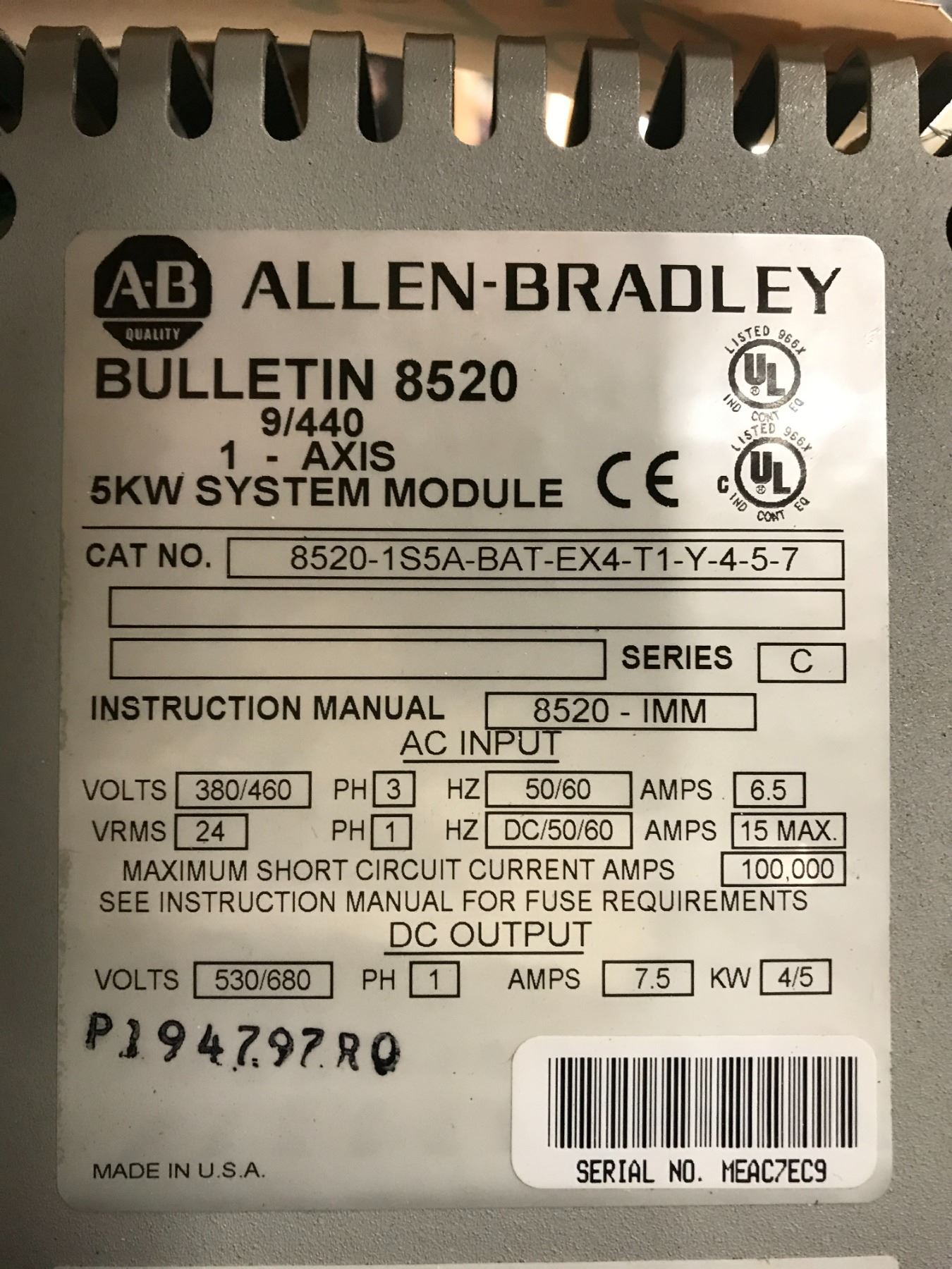 (3) ALLEN BRADLEY 8520-1S5A-BAT-EX4-T1-Y-4-5-7 SYSTEM MODULE