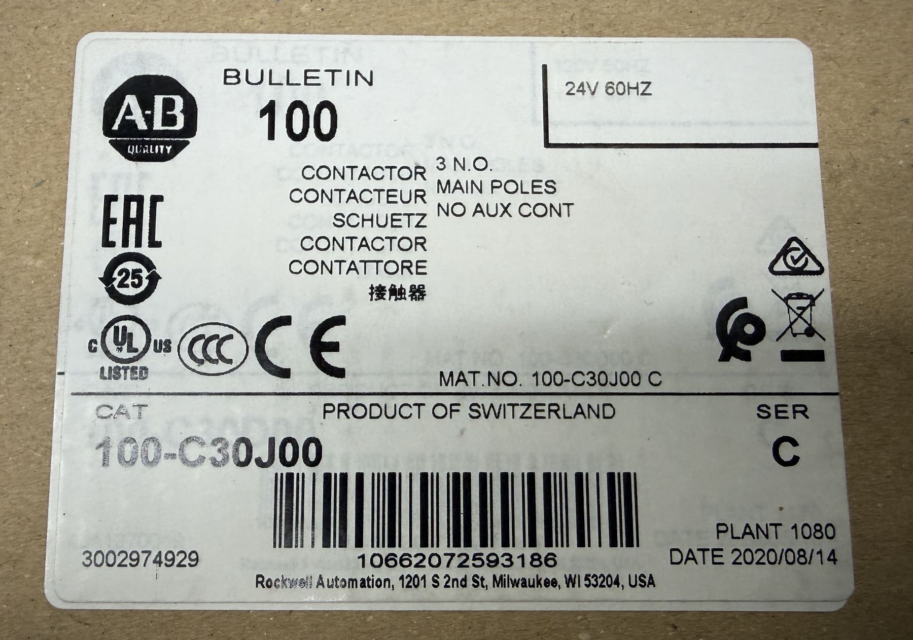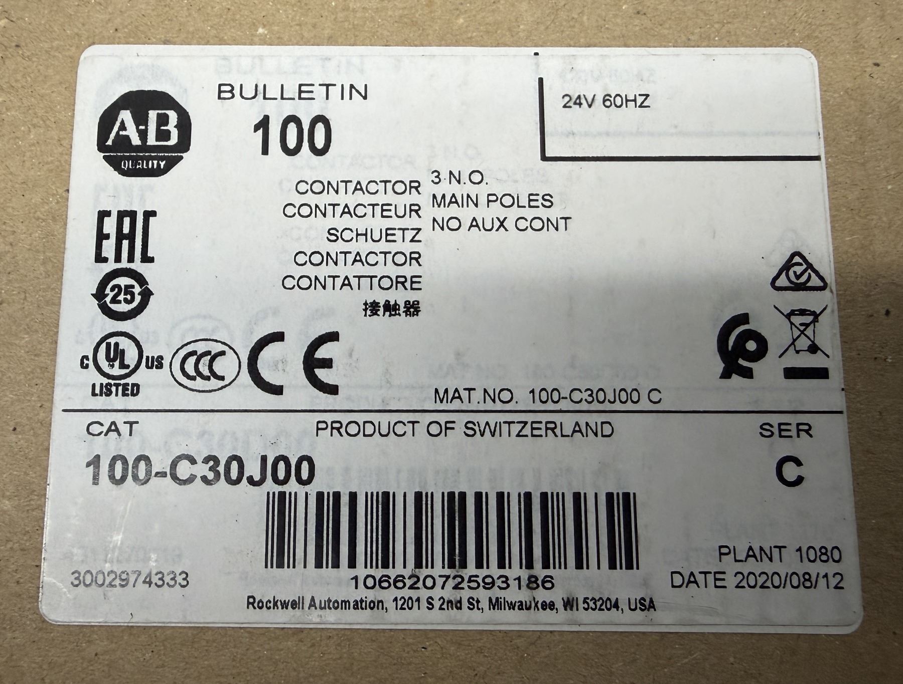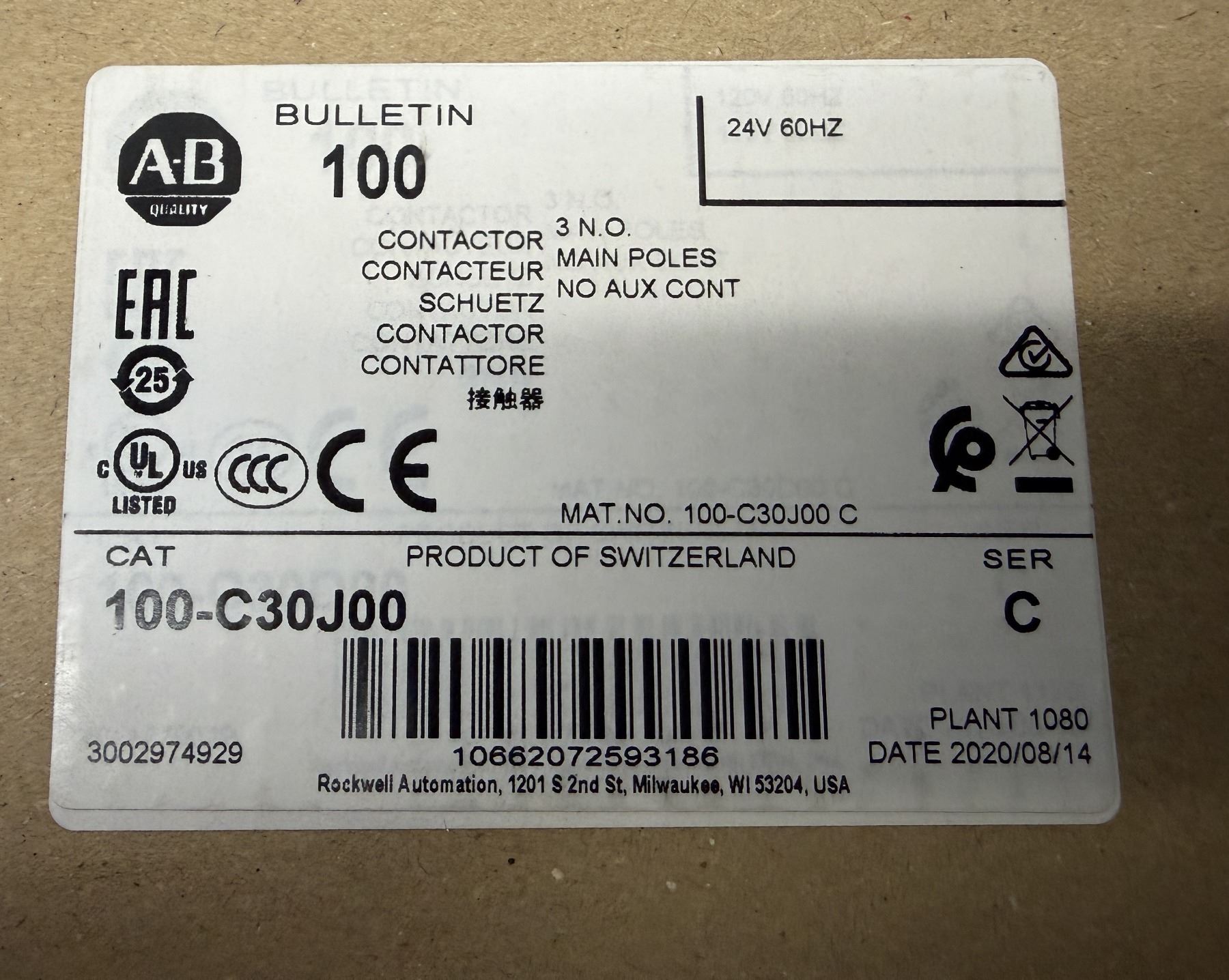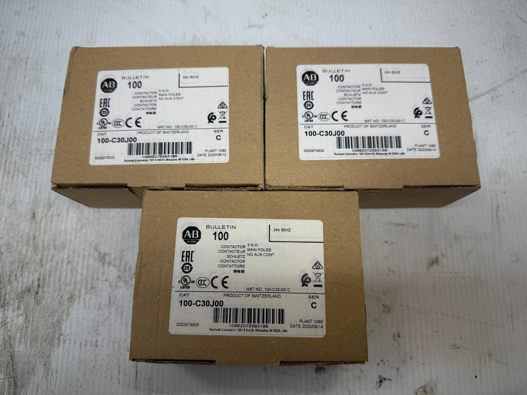(3) Allen-Bradley #100-C30J00 Contactors