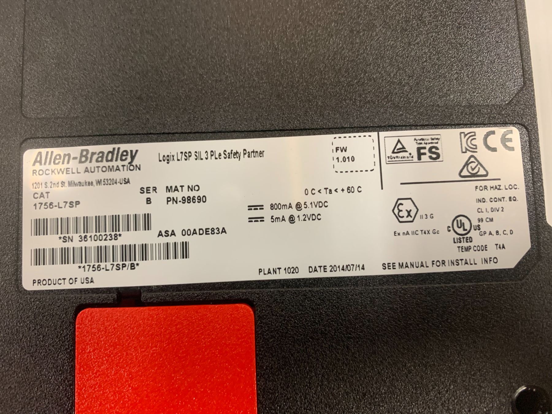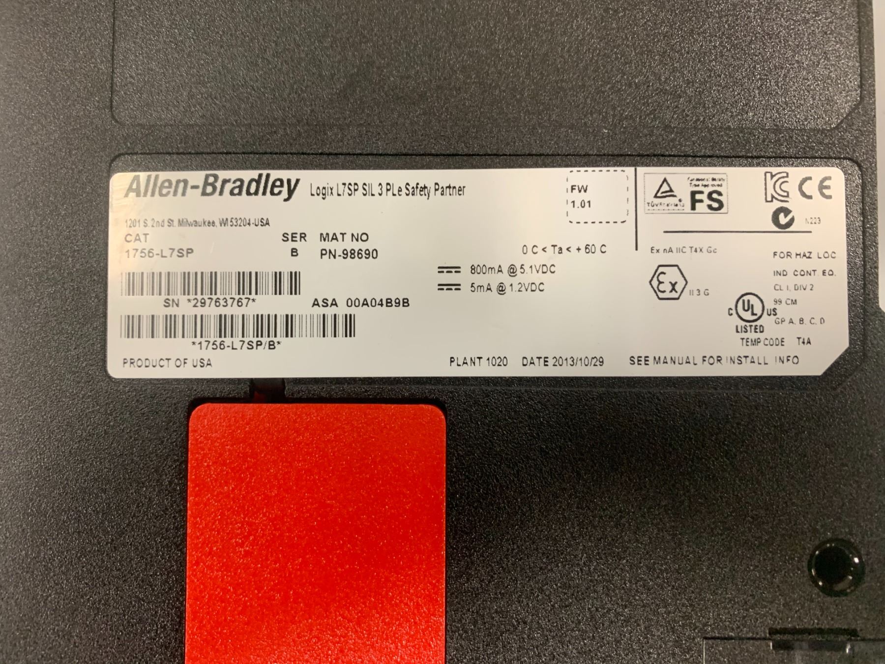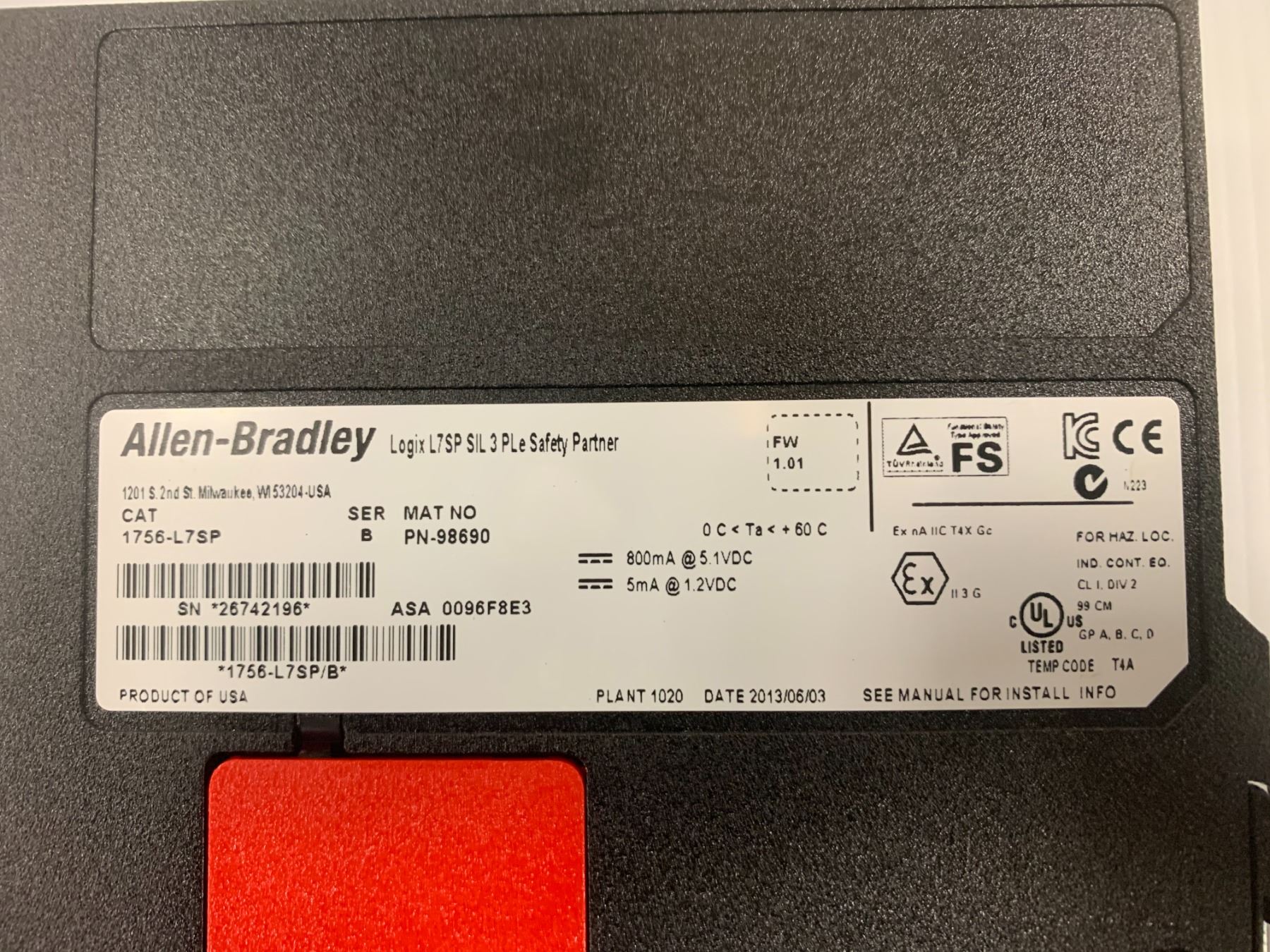(3) Allen Bradley 1756-L7SP Safety Partner