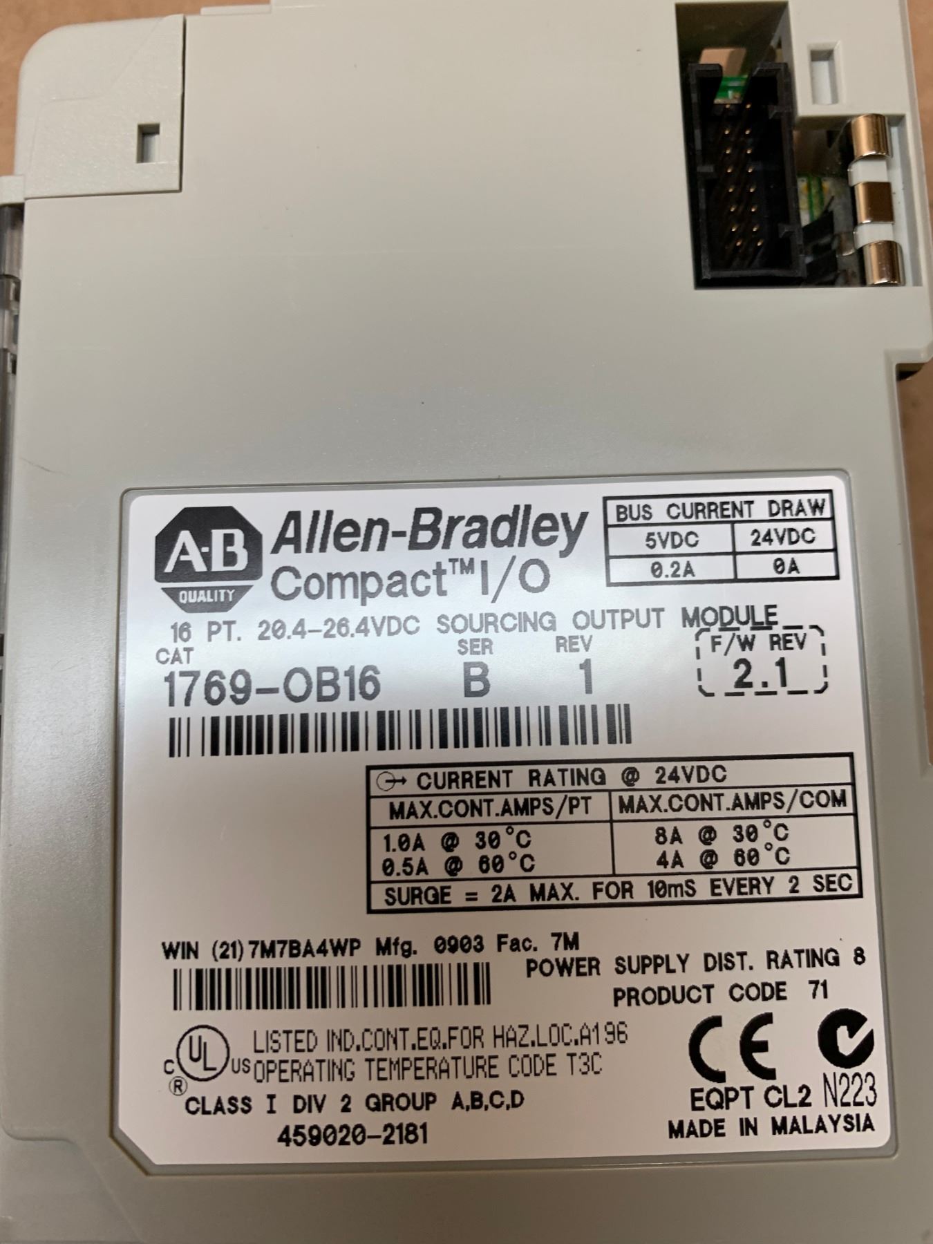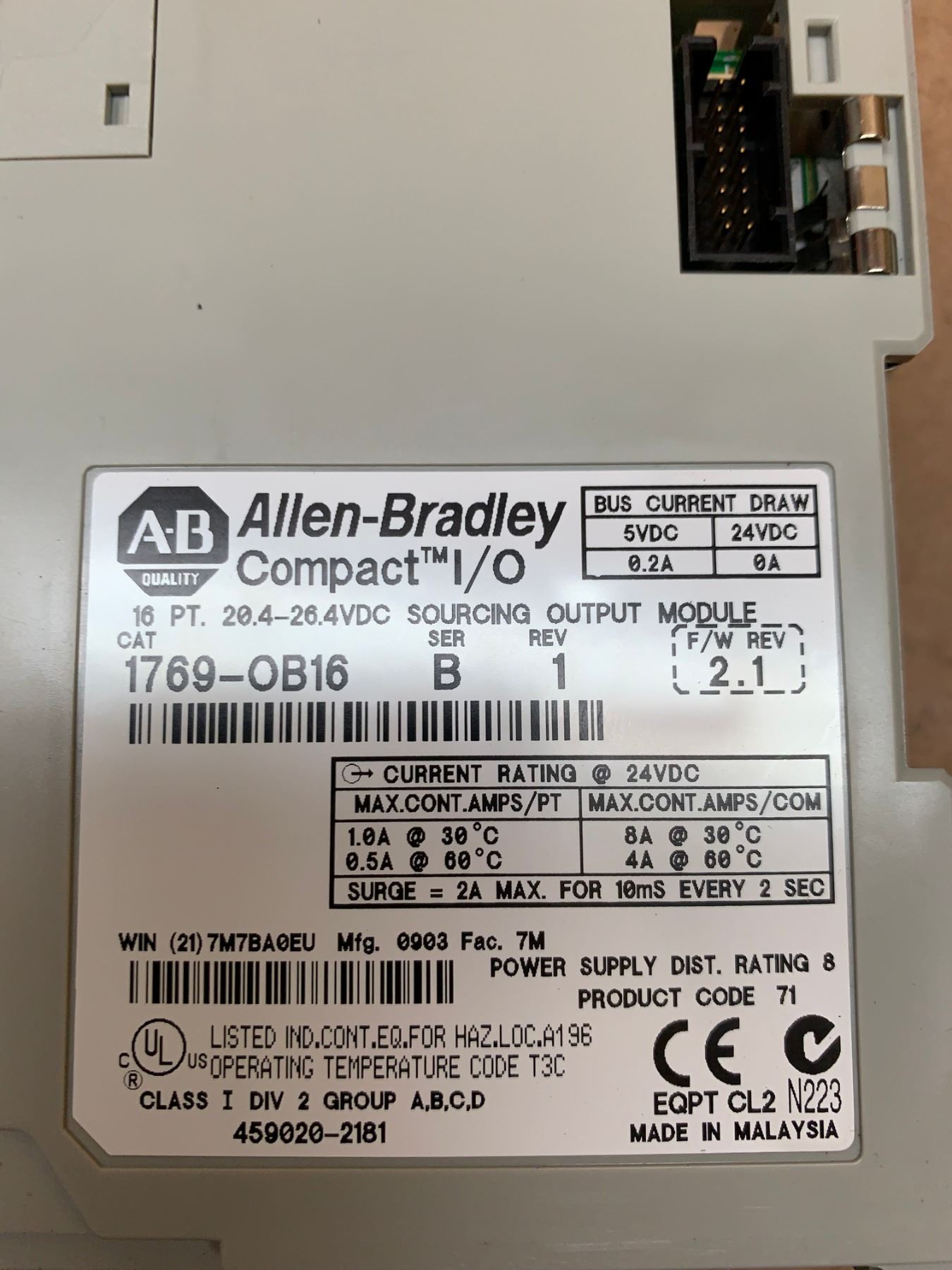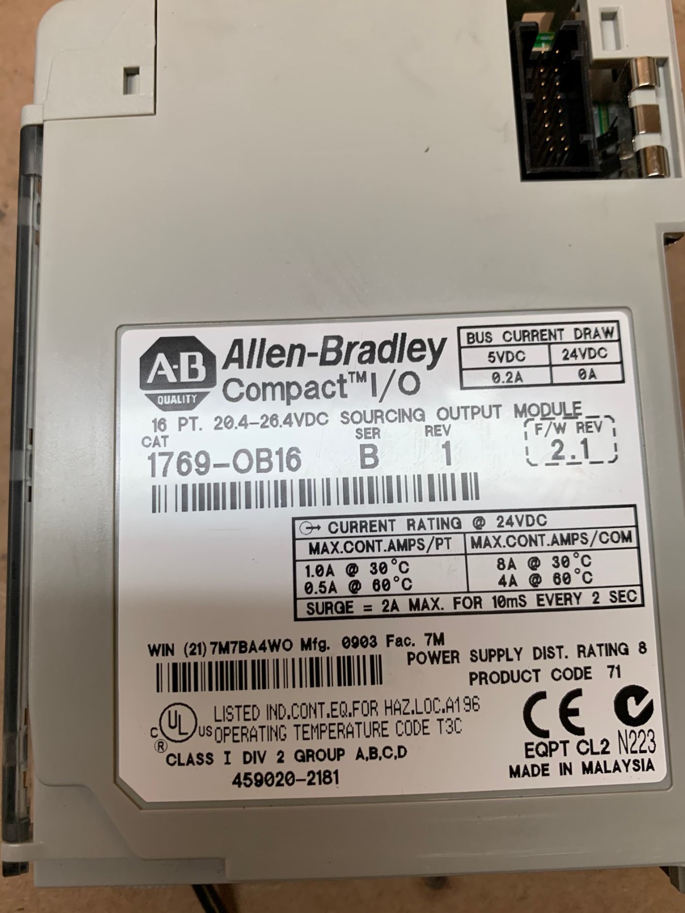 (3) Allen-Bradley 1769-OB16 Series B Rev 1 Compact I/O Sourcing Output Module