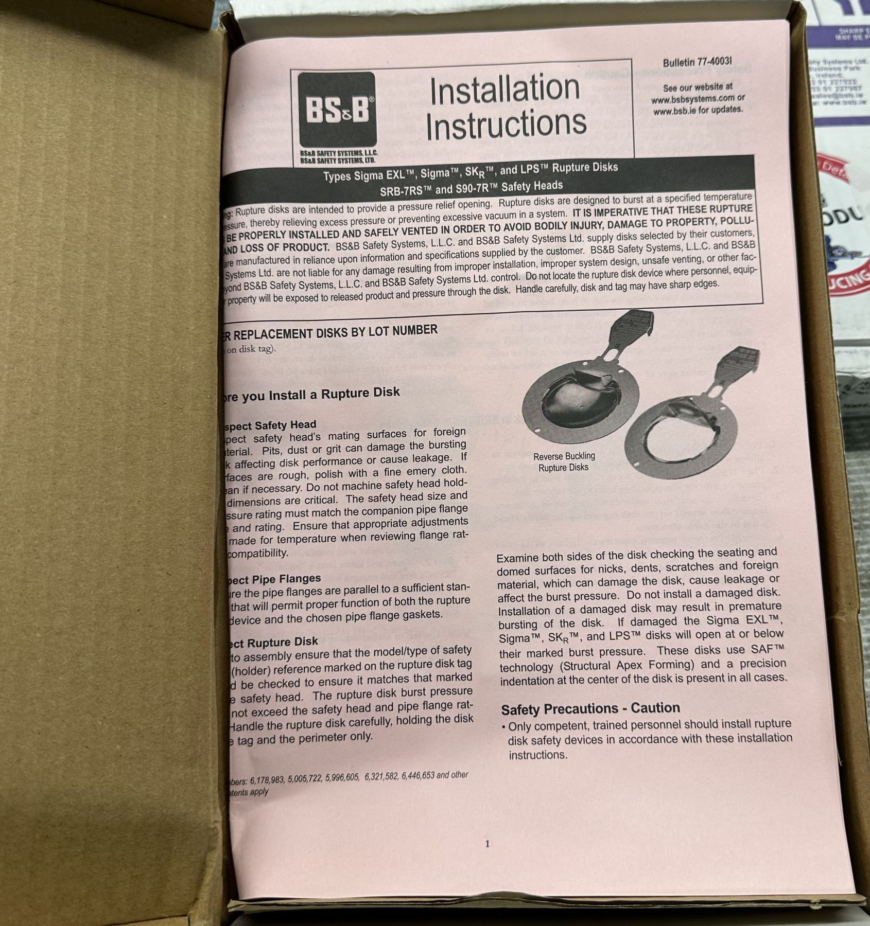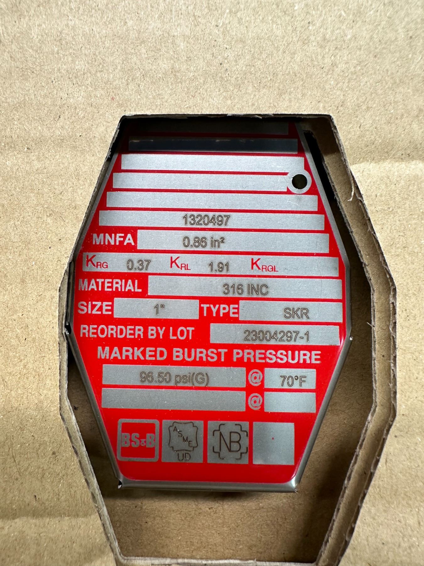 (3) BS&B Safety #23004297-1 Rupture Disc Burst Pressure 96.50PSI(G) @ 70 Degrees