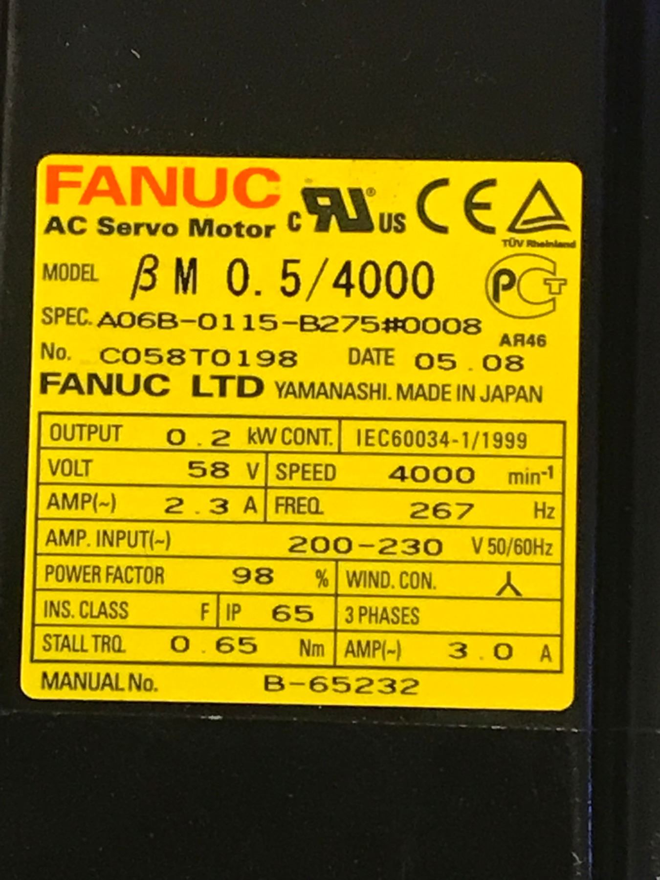 (3) FANUC A06B-0115-B275#0008 AC SERVO MOTOR