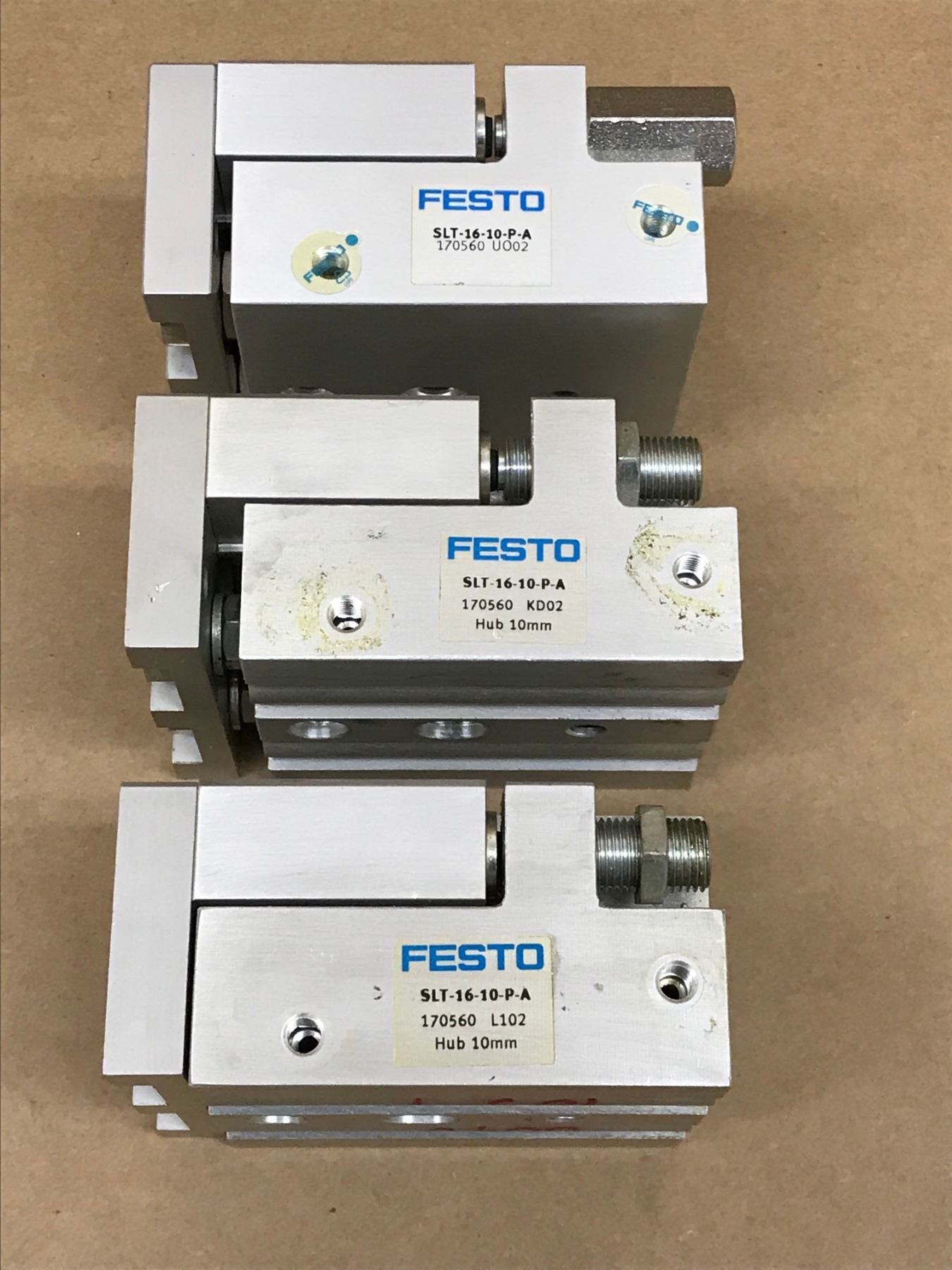 (3) FESTO SLT-16-10-P-A MINI SLIDE ASSEMBLY