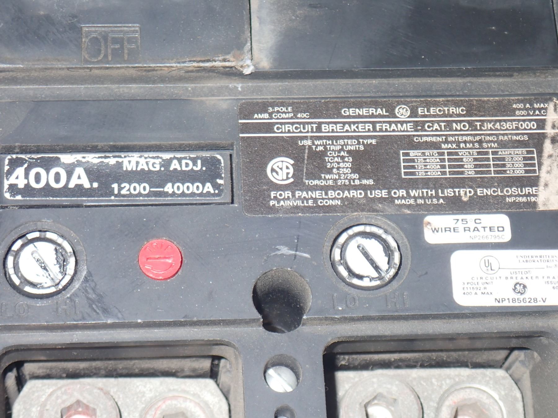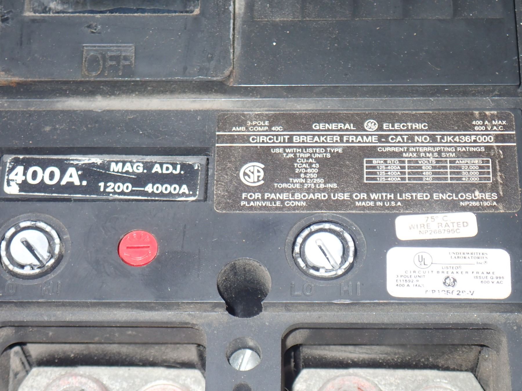 (3) GE 400 Amp Circuit Breakers