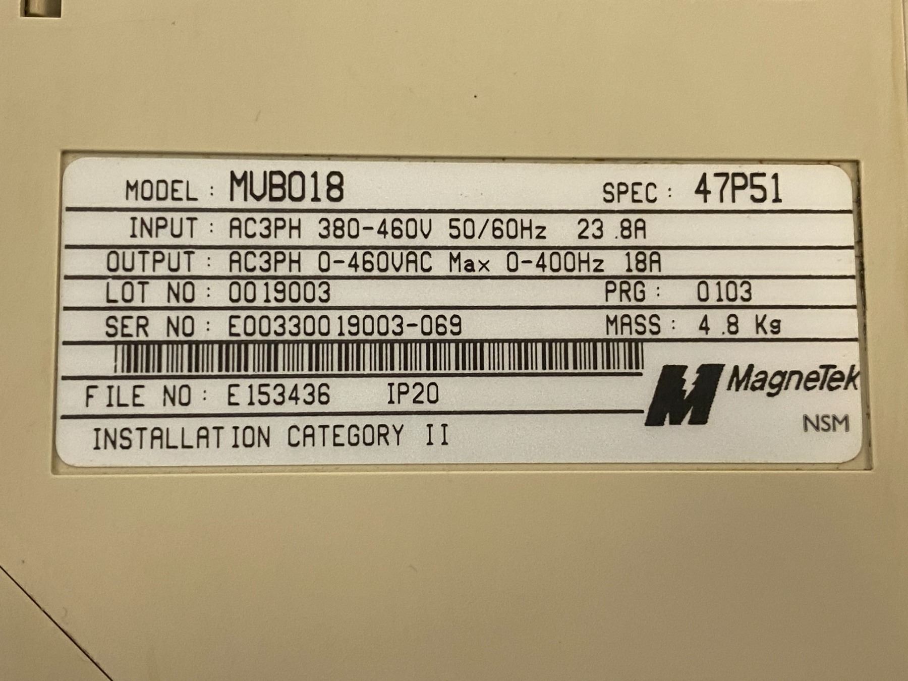 (3) Magnetek # MVB018 Drives