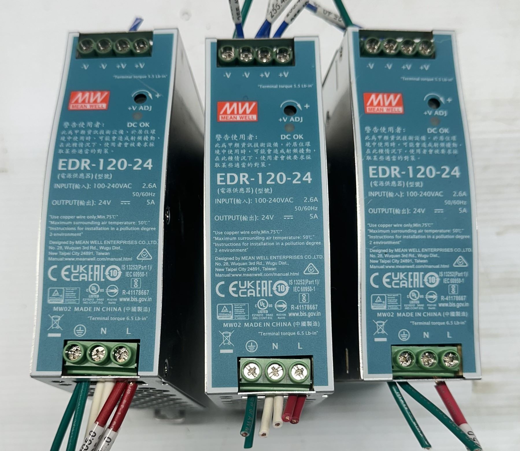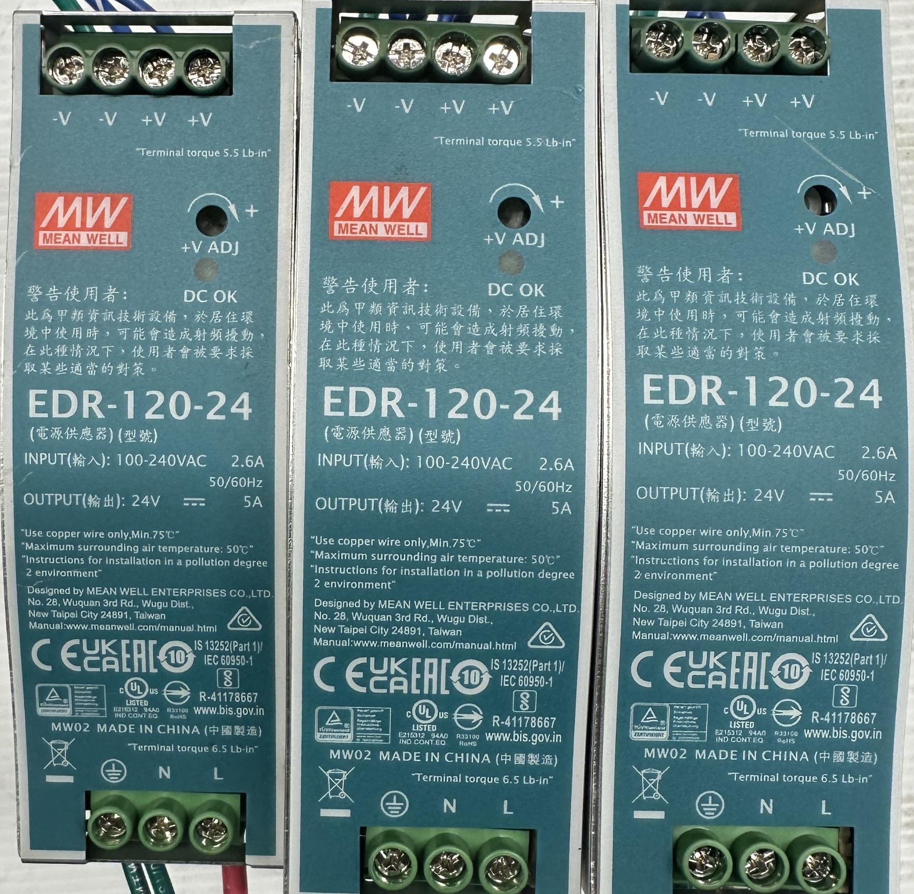 (3) Mean Well #EDR-120-24 Power Supplies