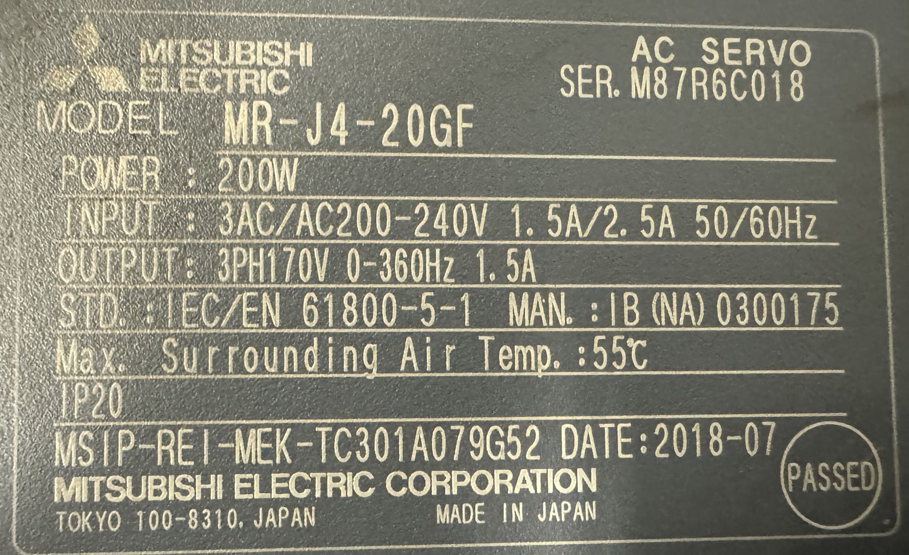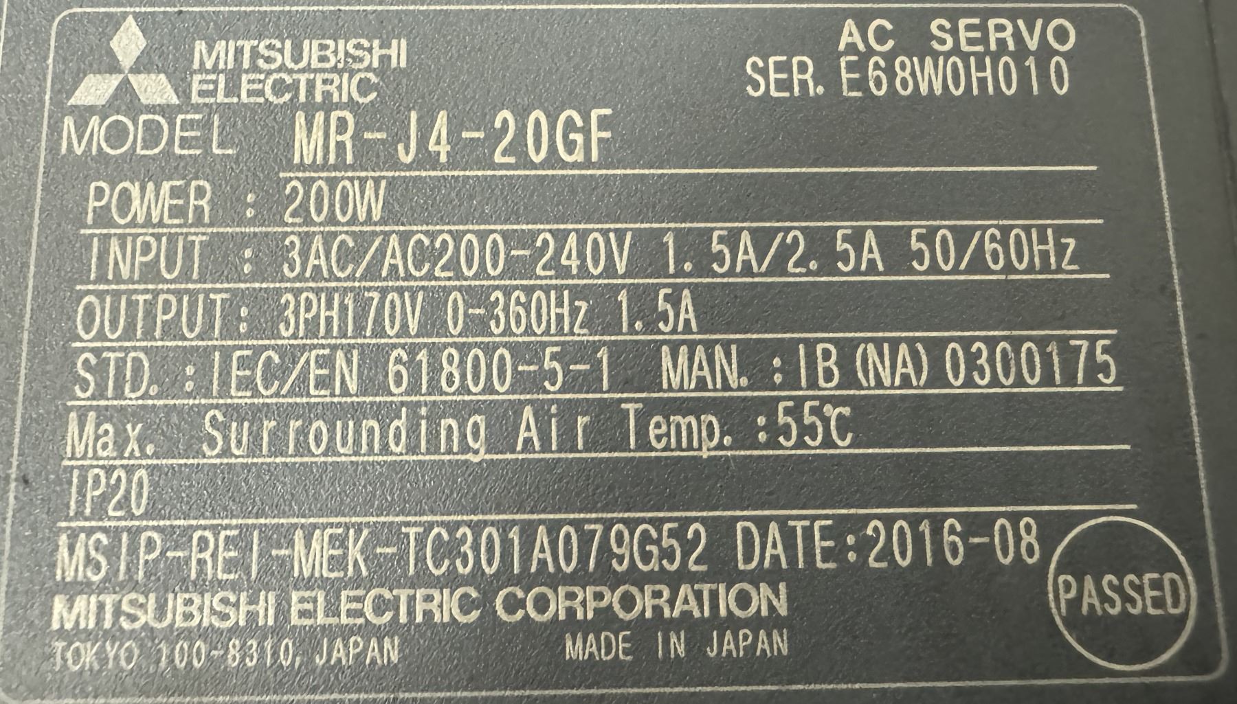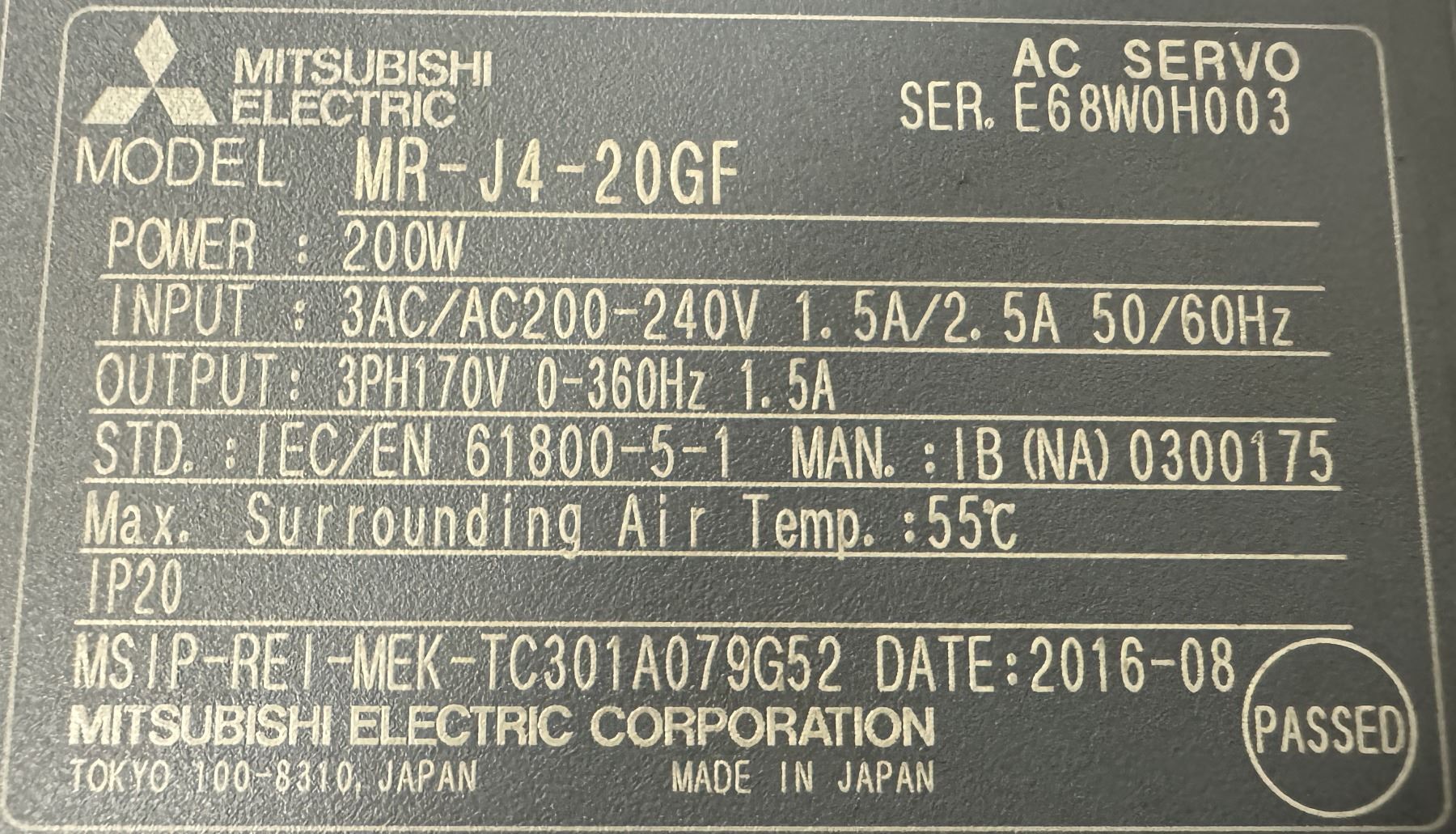 (3) Mitsubishi #MR-J4-20GF AC Servo Drives