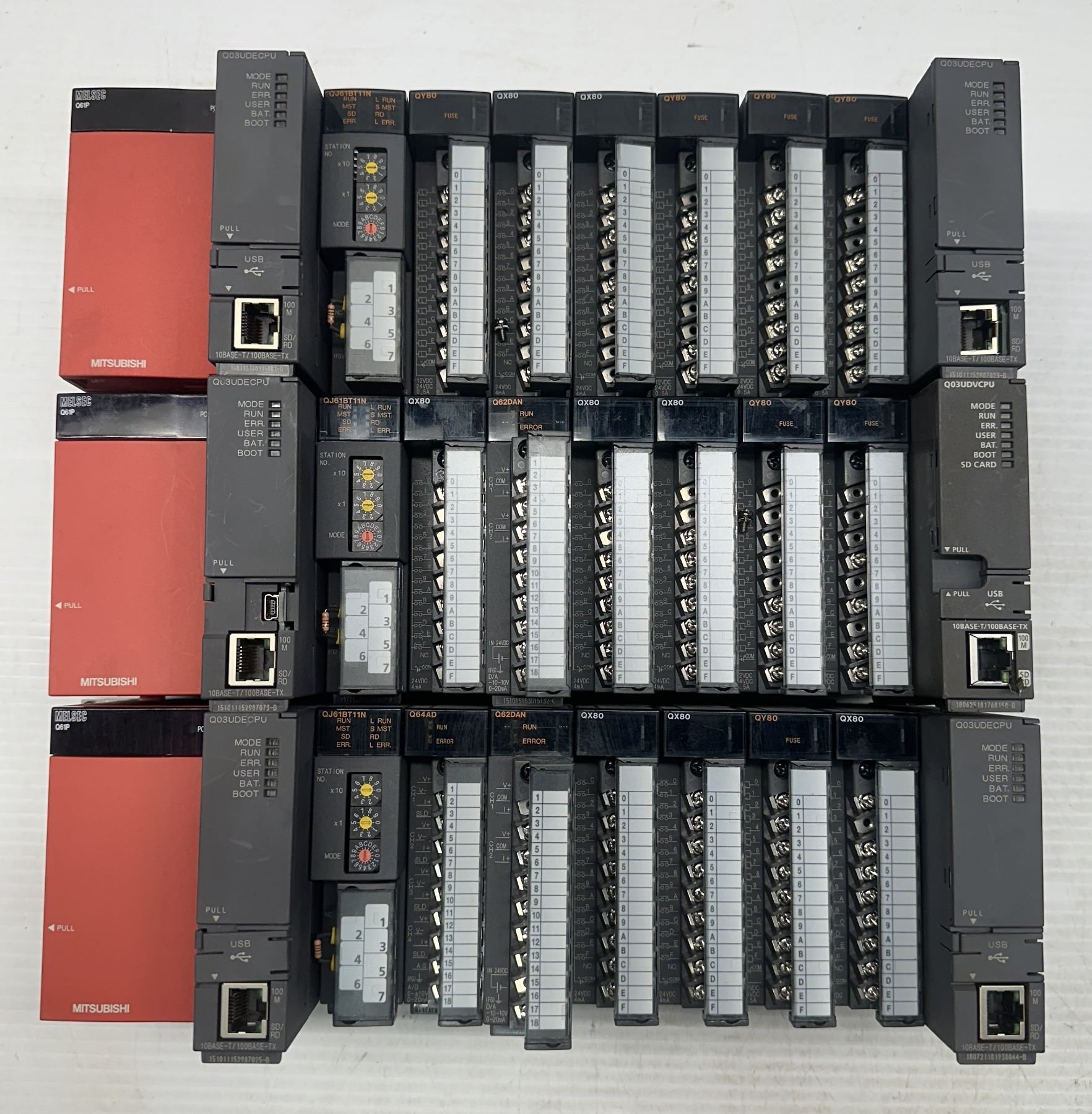 (3) Mitsubishi #Q38B Base Units w/Power Supplies & Modules
