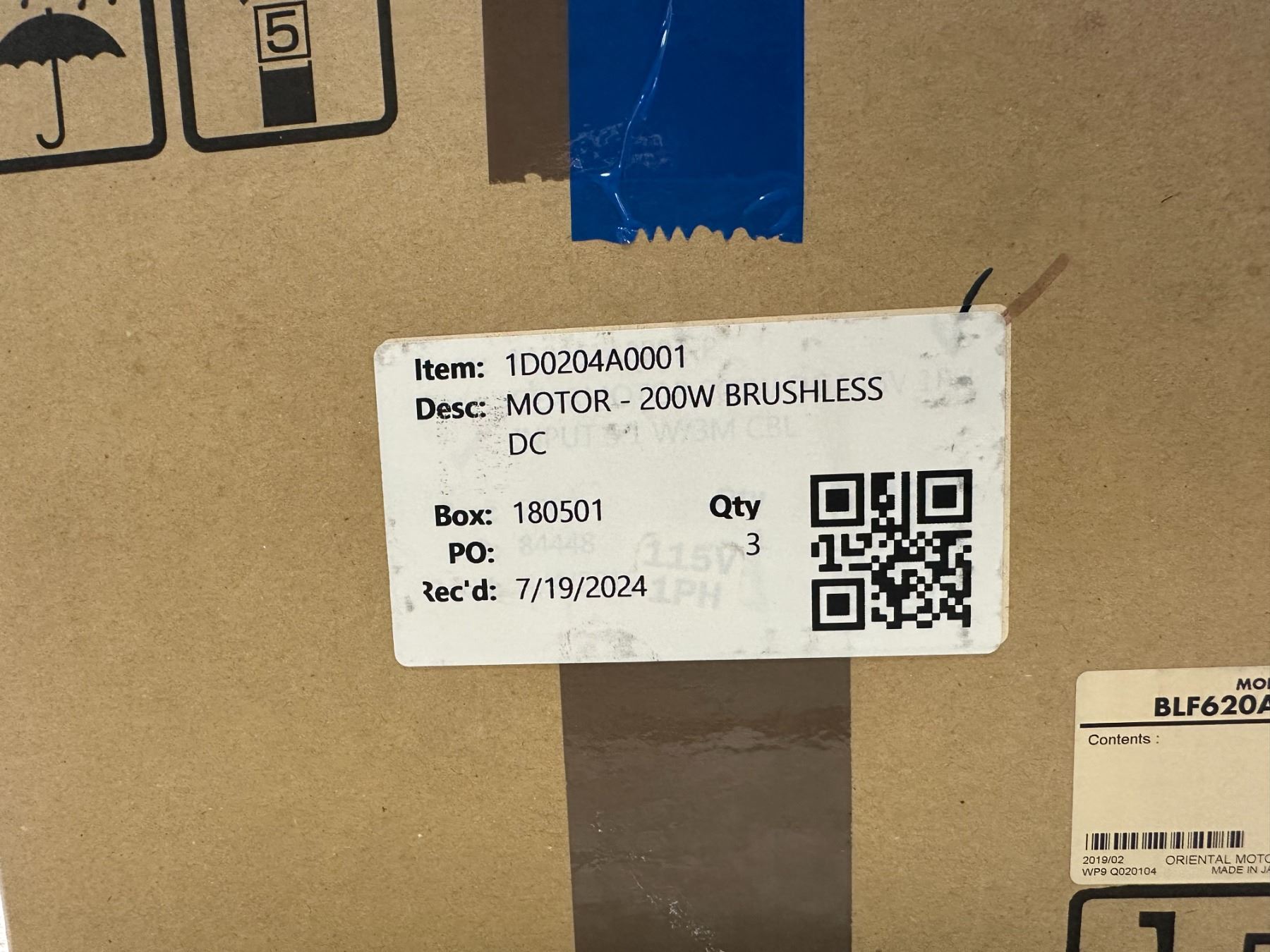 (3) Oriental Motor #BLFM6200-GFS Brushless Motors
