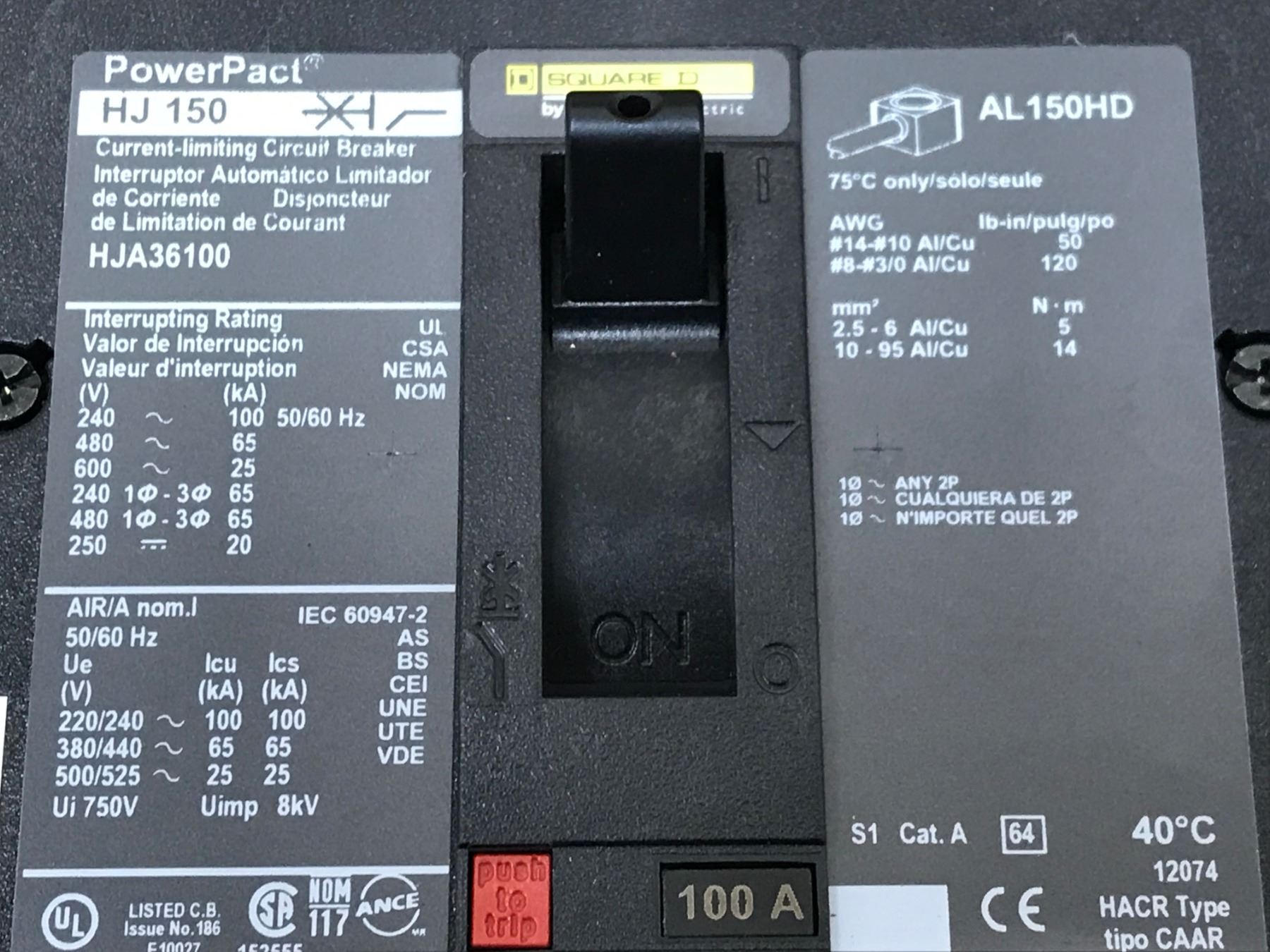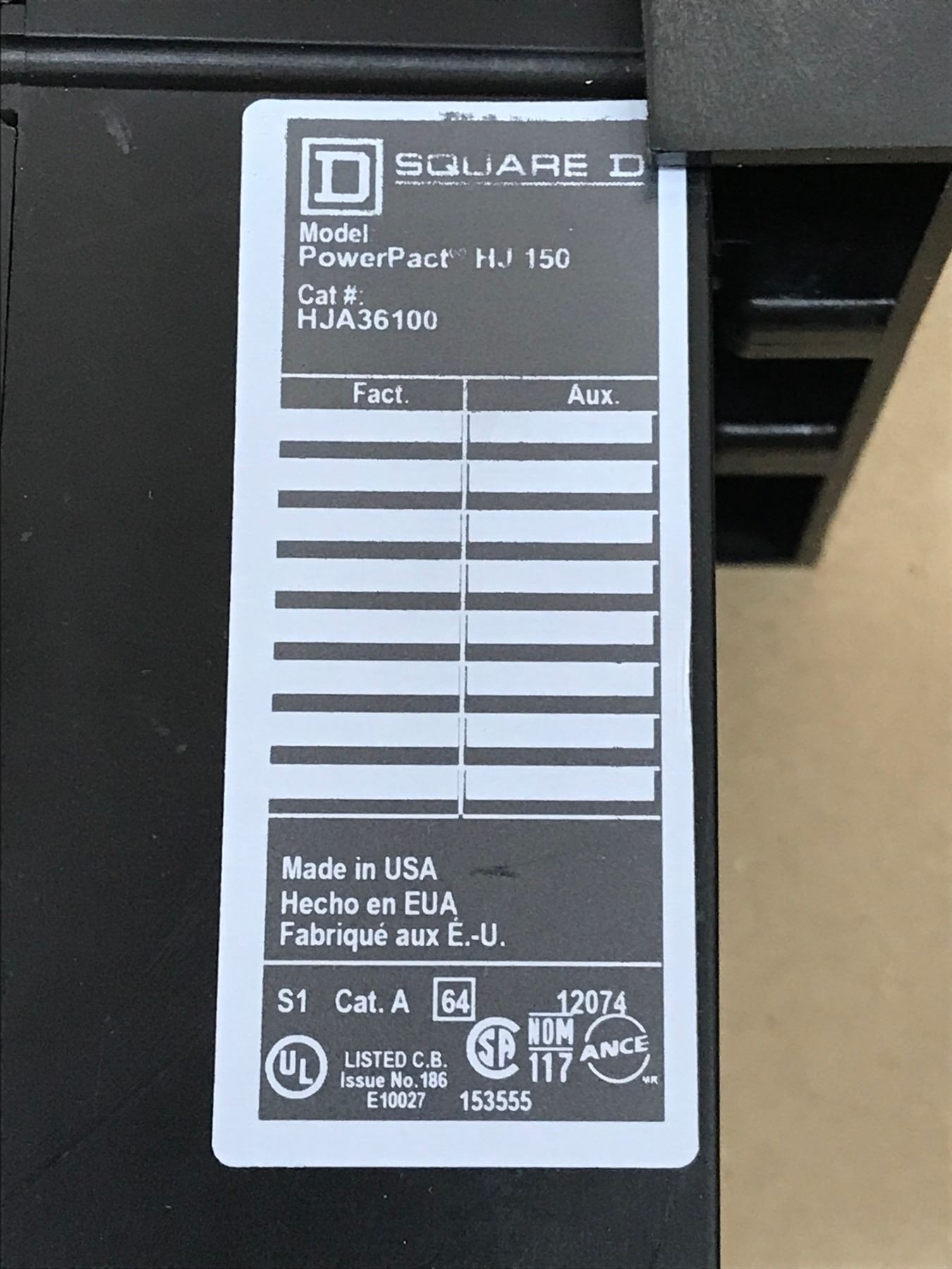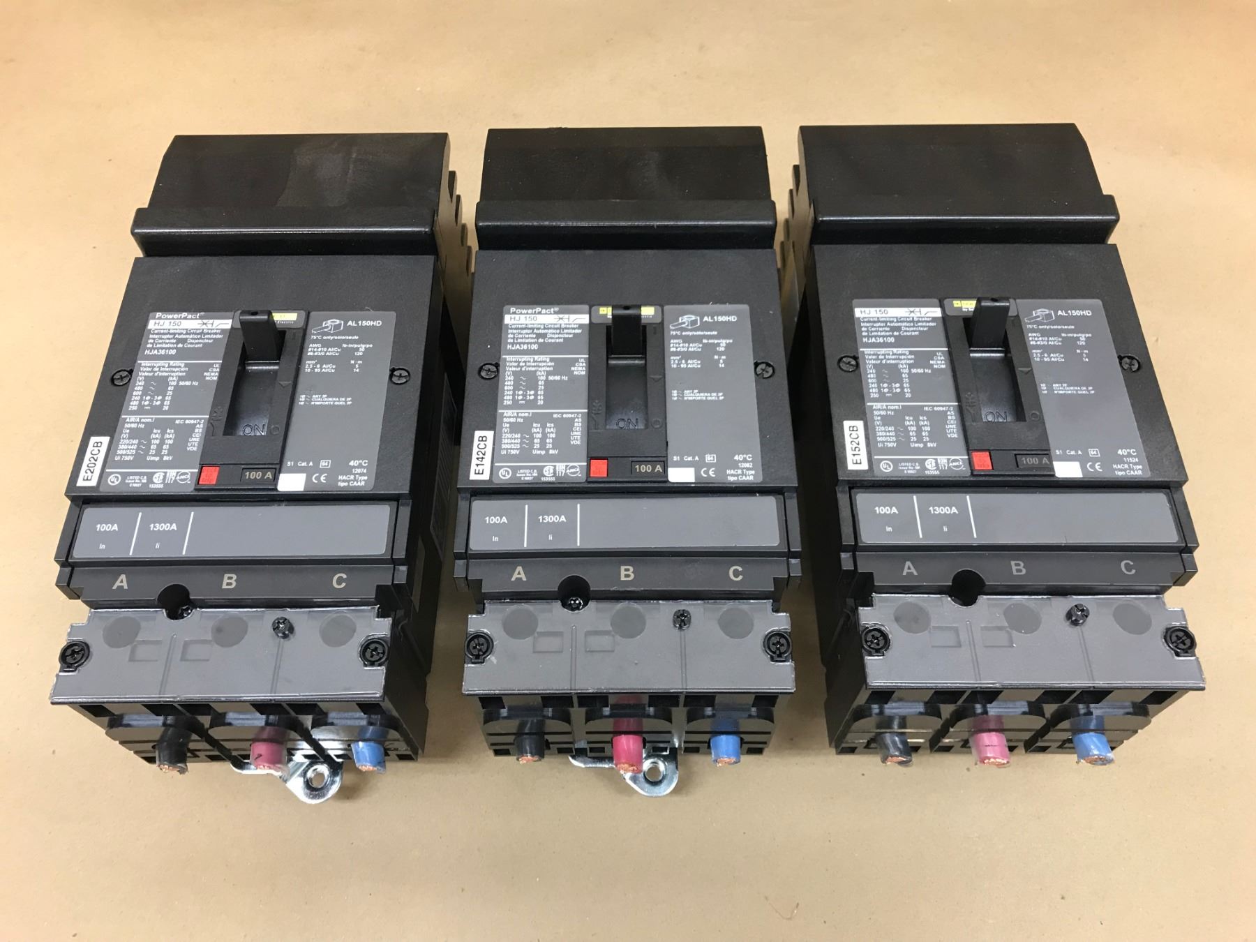 (3) SQUARE D HJ 150 HJA36100 CIRCUIT BREAKER