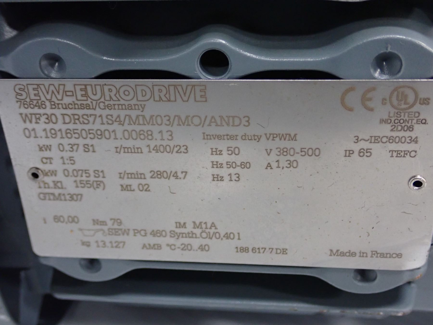 (3) Sew-Eurodrive # WF30 DRS71S4/MM03/MO/AND3 Gear Motors
