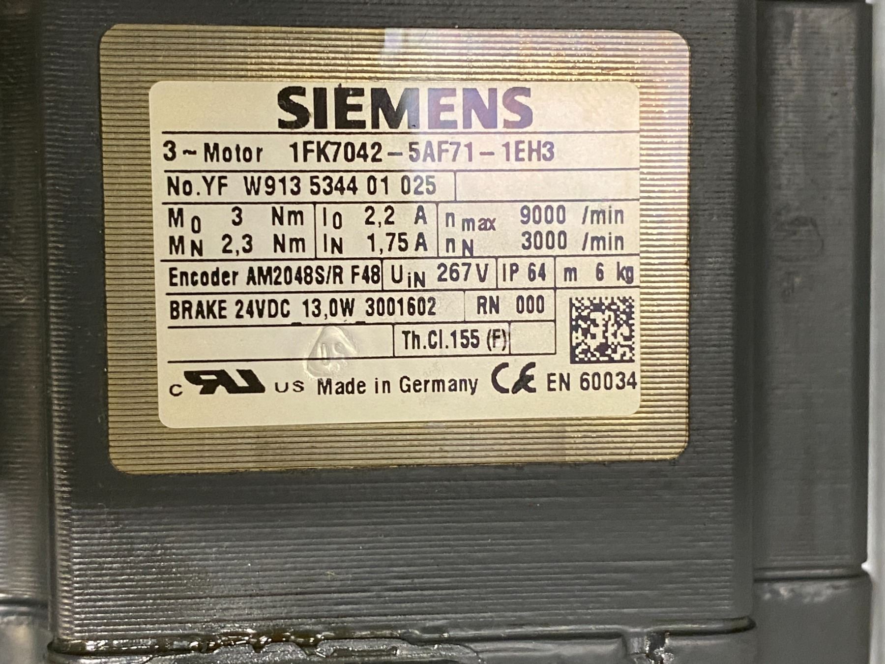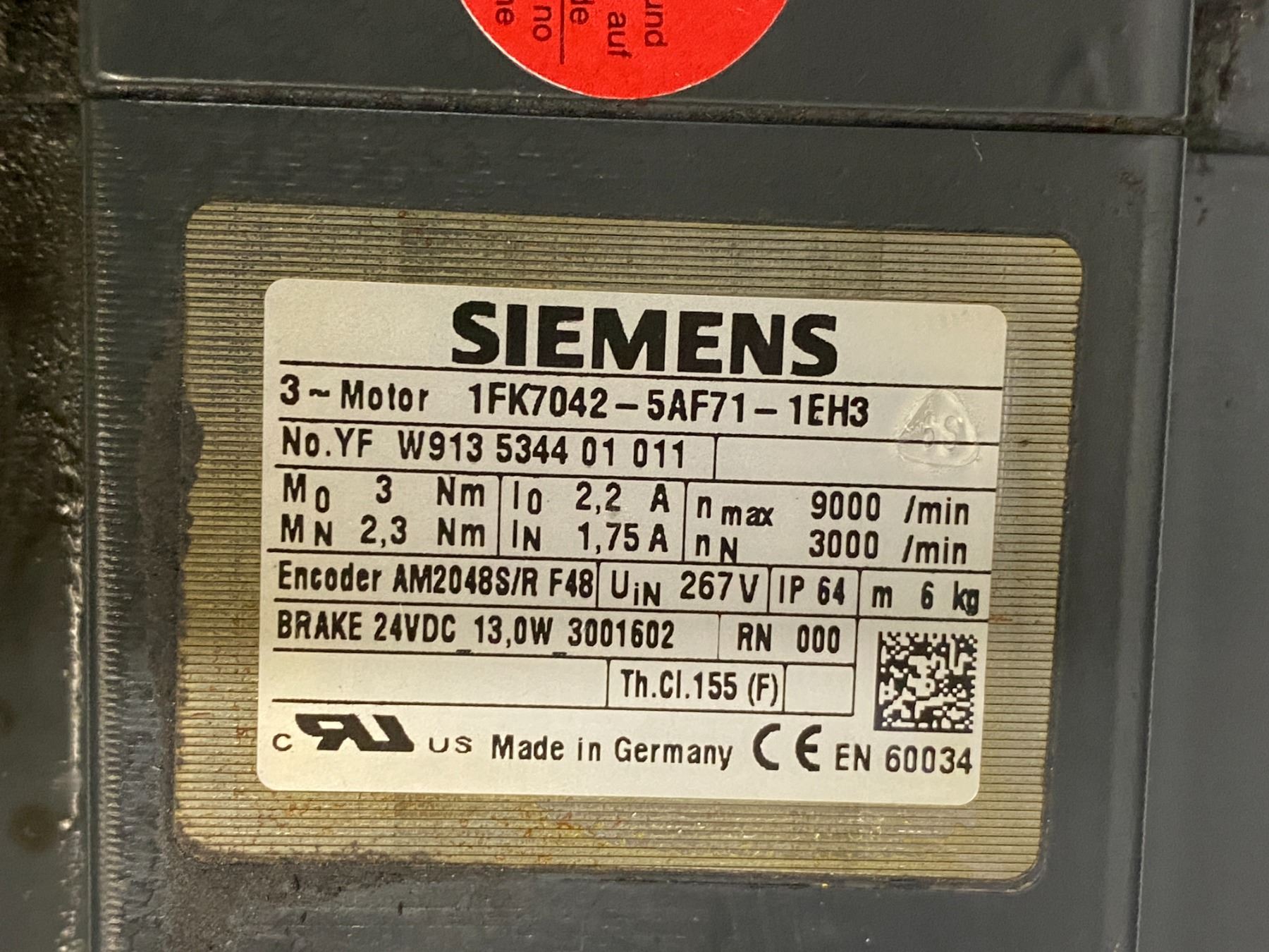 (3) Siemens # 1FK7042-5AF71-1EH3 Motors