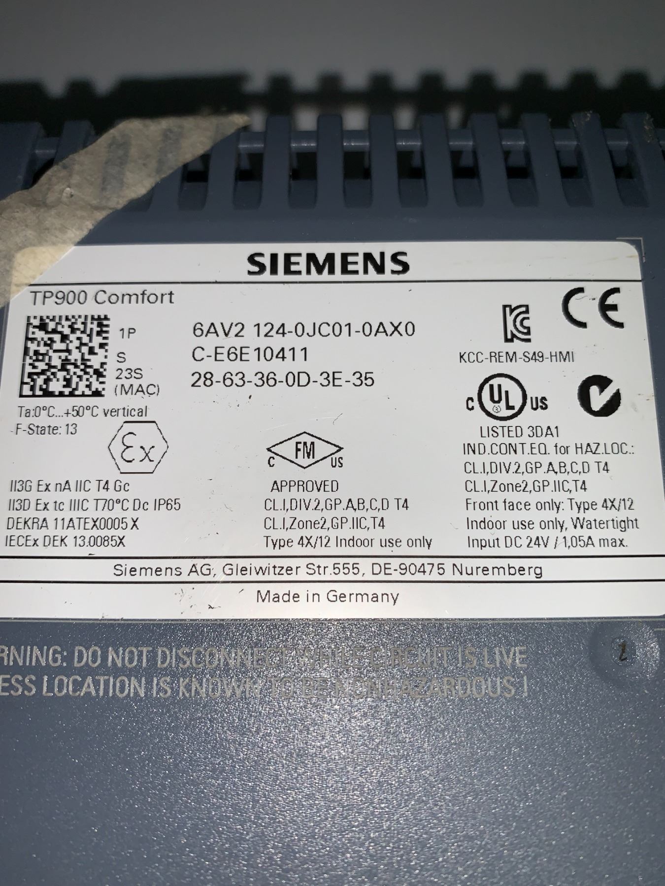 (3) - Siemens 6AV2 124-0JC01-0AX0 TP900 Comfort Touch Screens